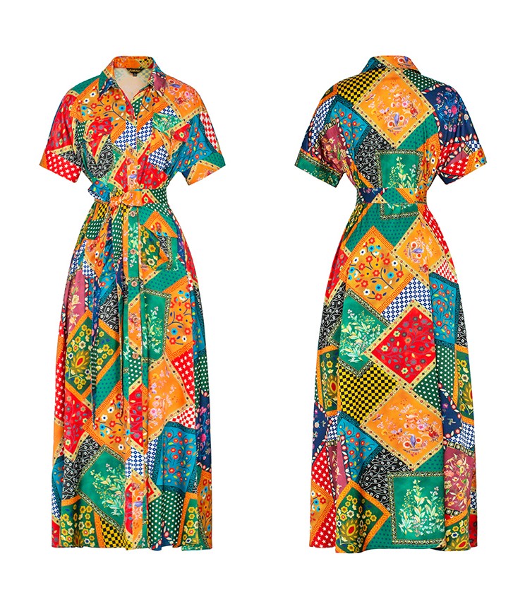 VERRAGE PATCHWORK FLORAL MAXI SHIRT DRESS