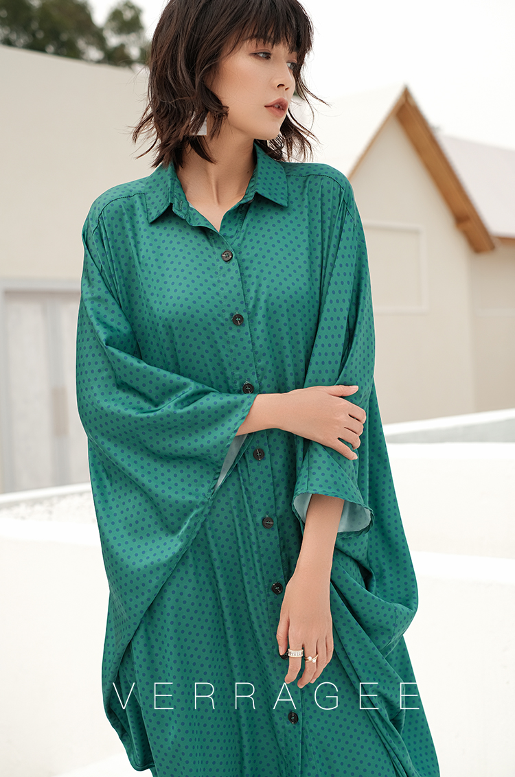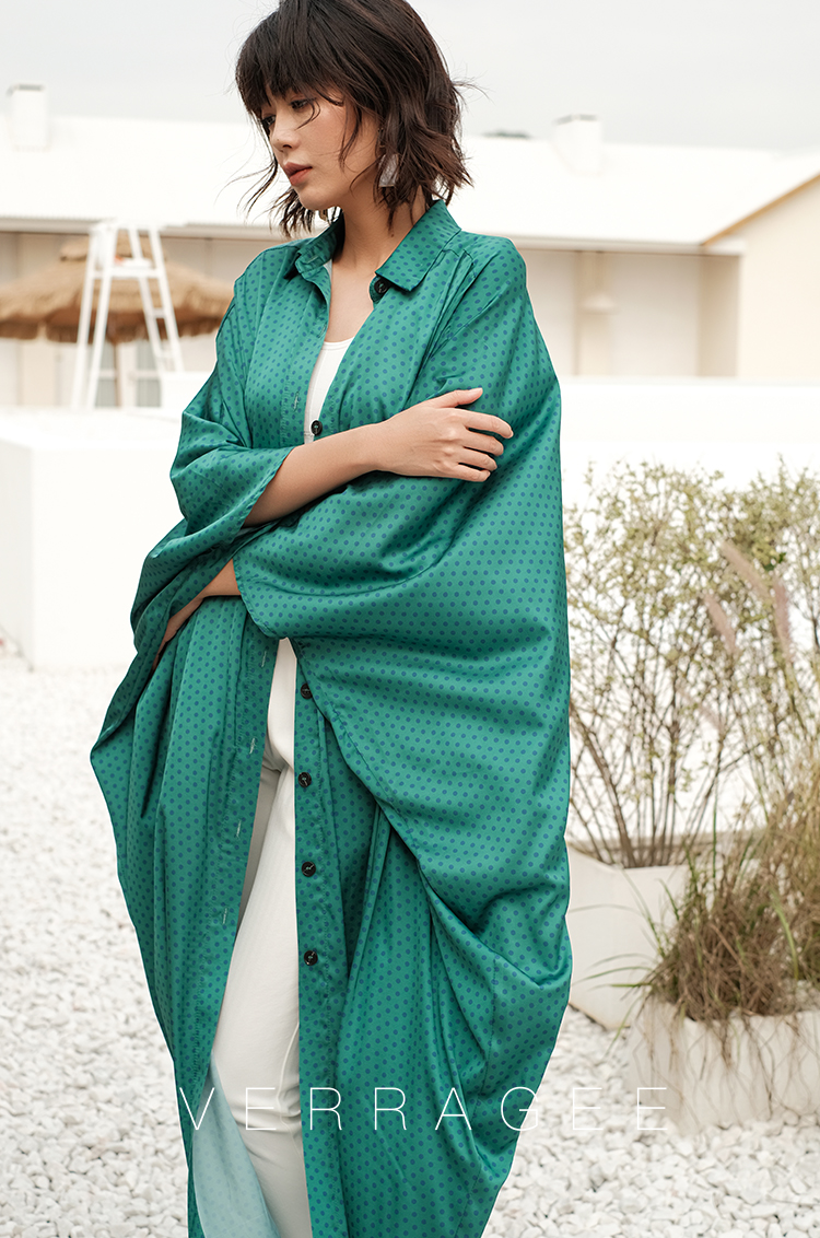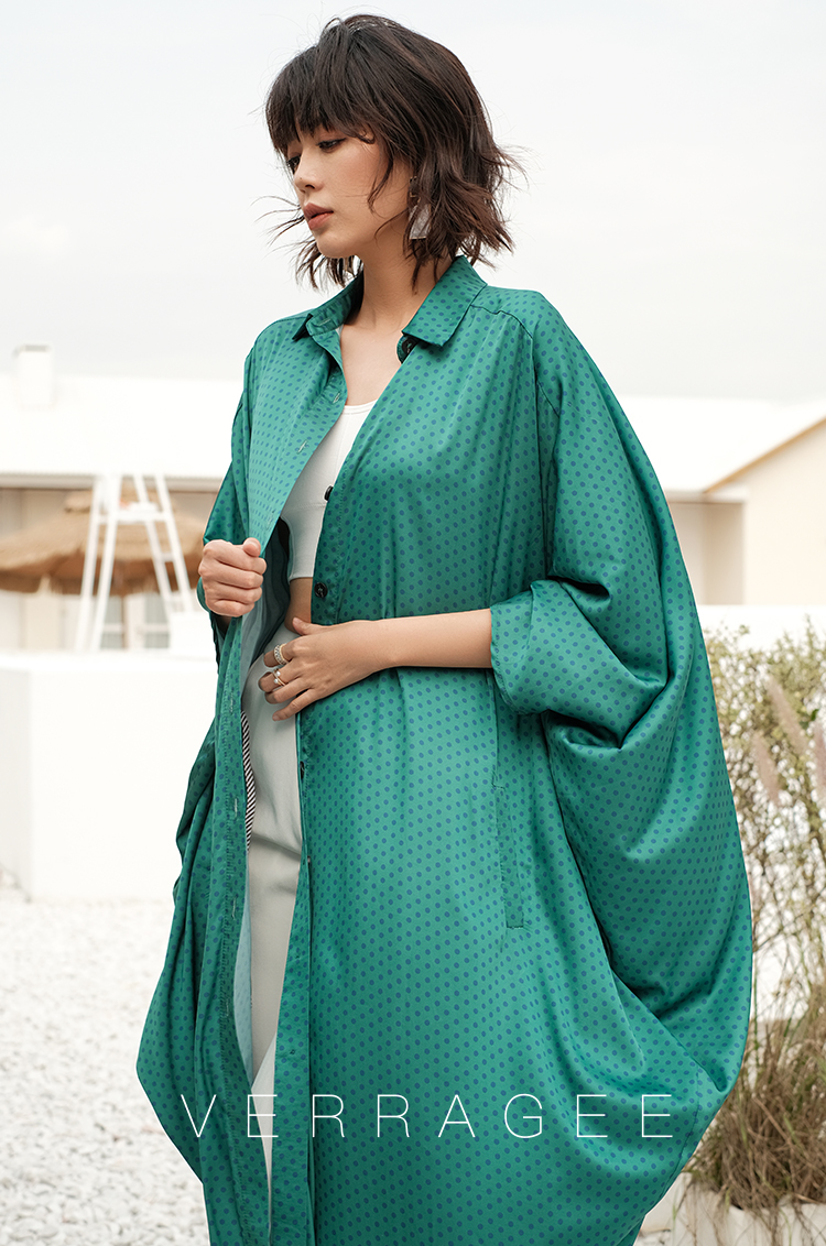 VERRAGE SPOT PRINT OVERSIZED LONGLINE KIMONO SHIRT