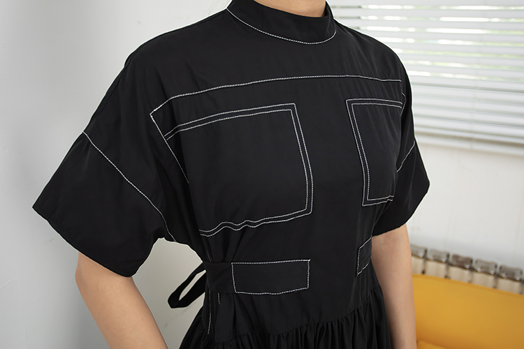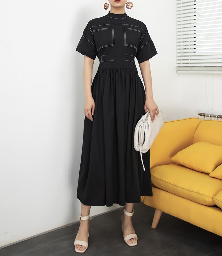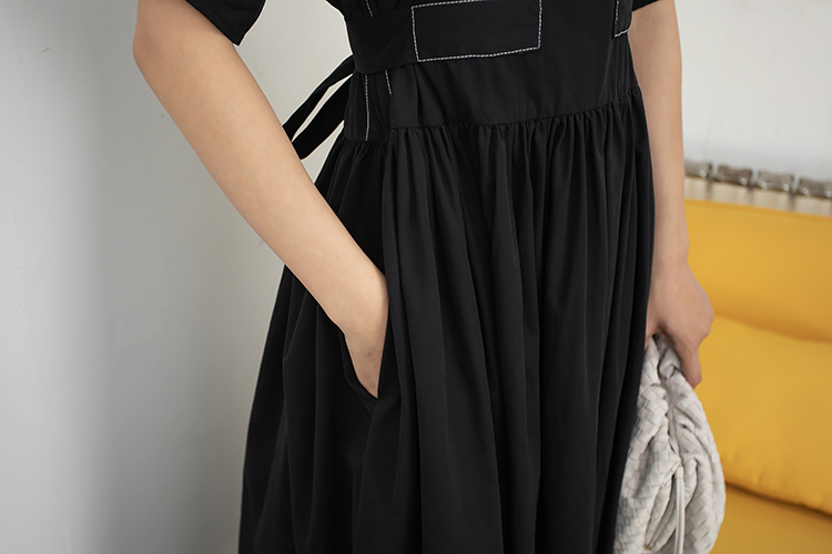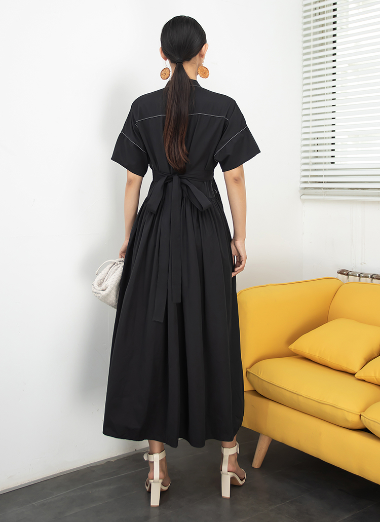 VERRAGE MIDI TEA DRESS WITH FULL SKIRT AND TIE BACK IN BLACK