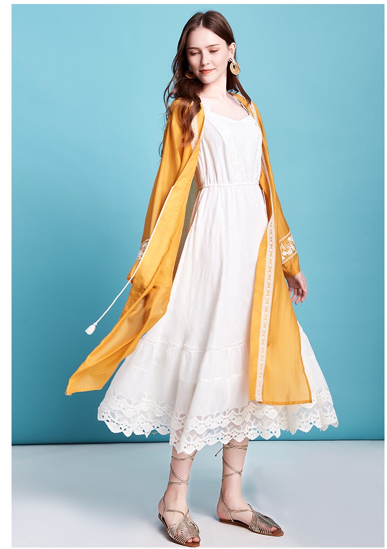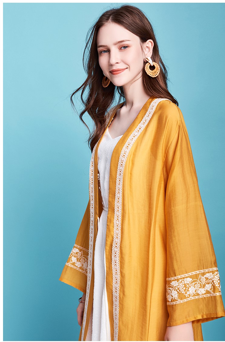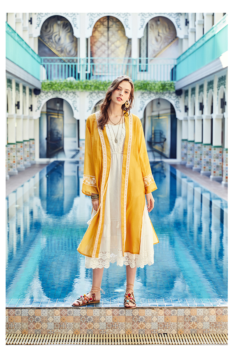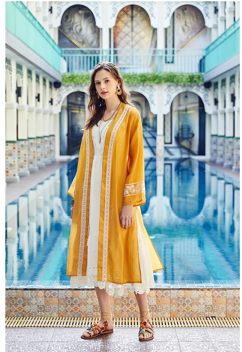ARTKA TIE FRONT LONG LINE KAFTAN WITH EMBROIDERY