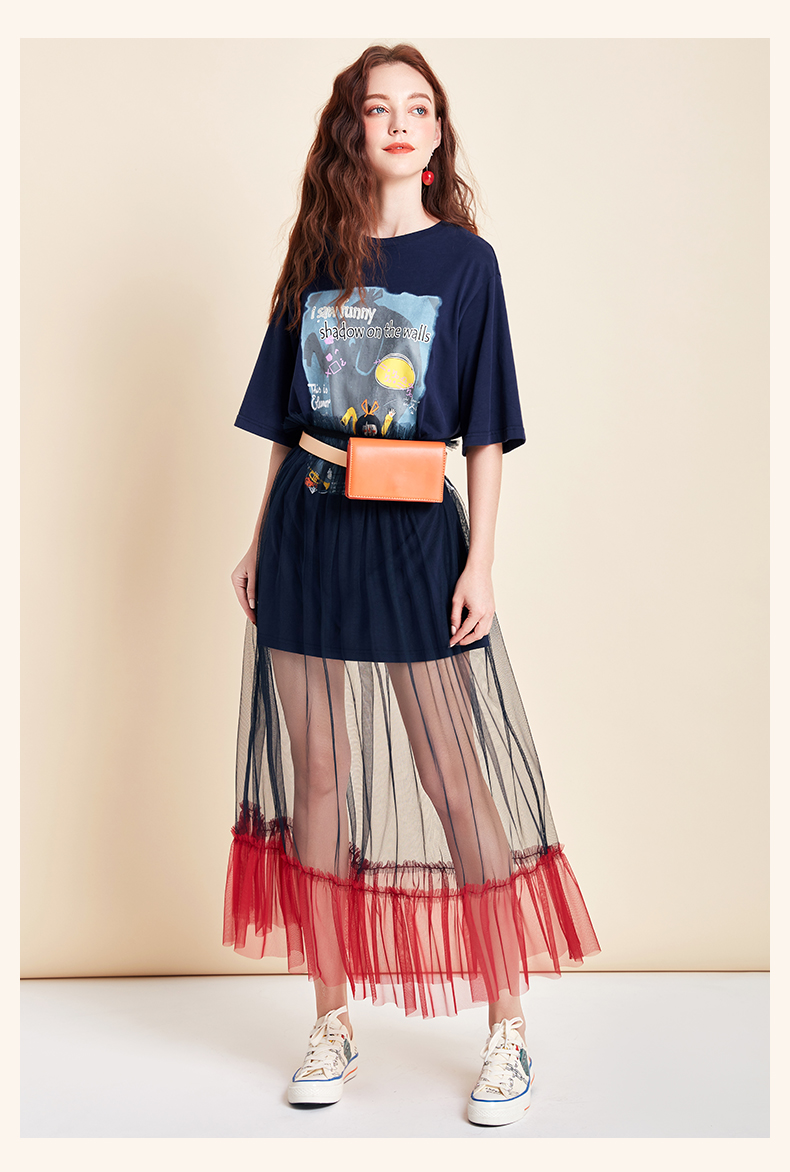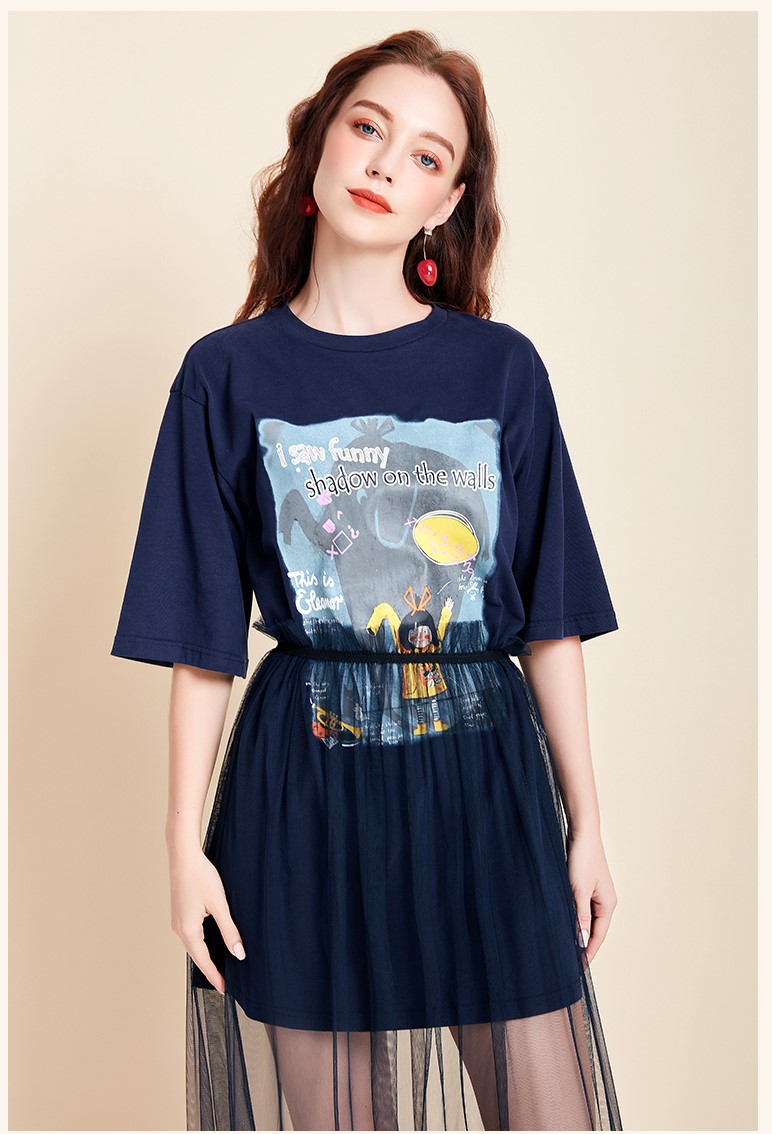ARTKA PRINT T SHIRT DRESS WITH MESH SKIRT