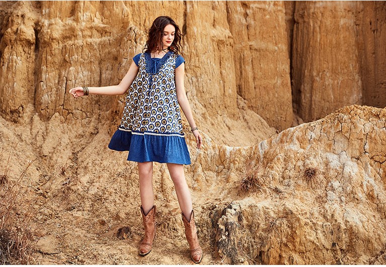RICKER PADDY RETRO ETHNIC STYLE EMBROIDERED TASSEL DENIM JEAN WOMEN JACKET