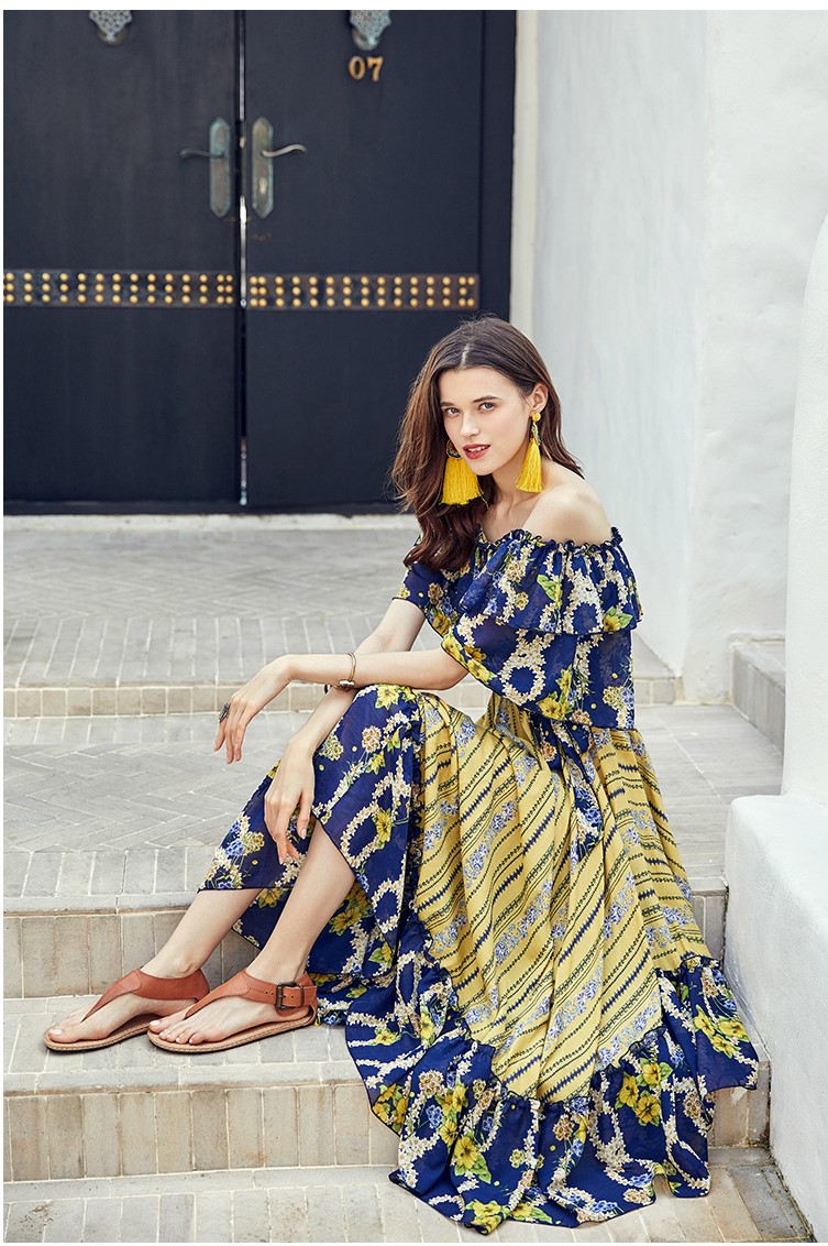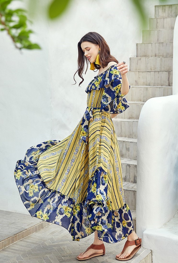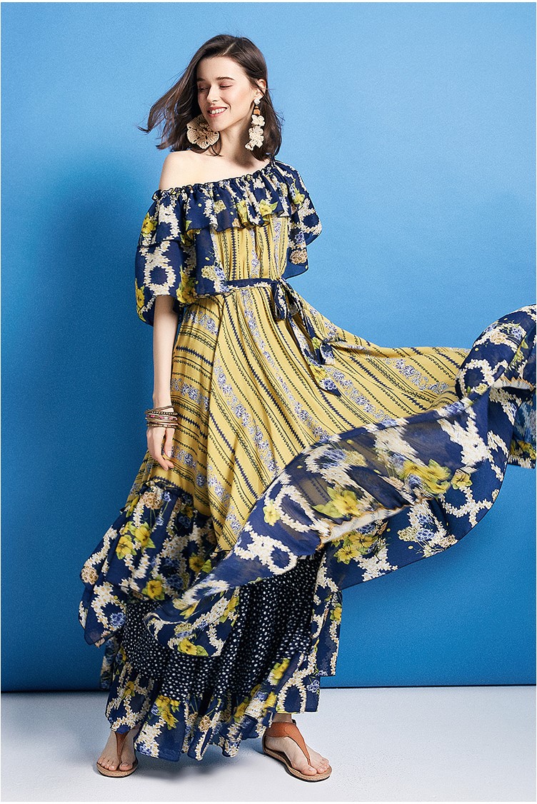 Scarf print Maxi length Off-shoulder design Tie waist detail