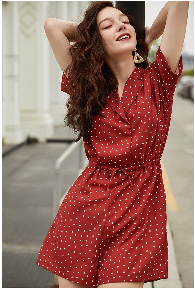 ARTKA POLKA DOT PRINT PLAYSUIT WITH TIE WAIST