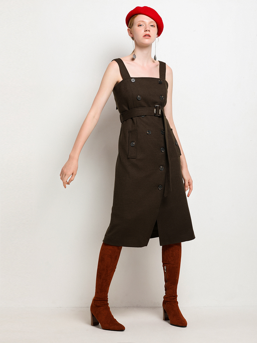 C4MORE HIPSTER MASTER YODA WOOLEN HIGH WAIST DRESS WITH SUSPENDER