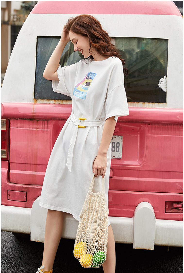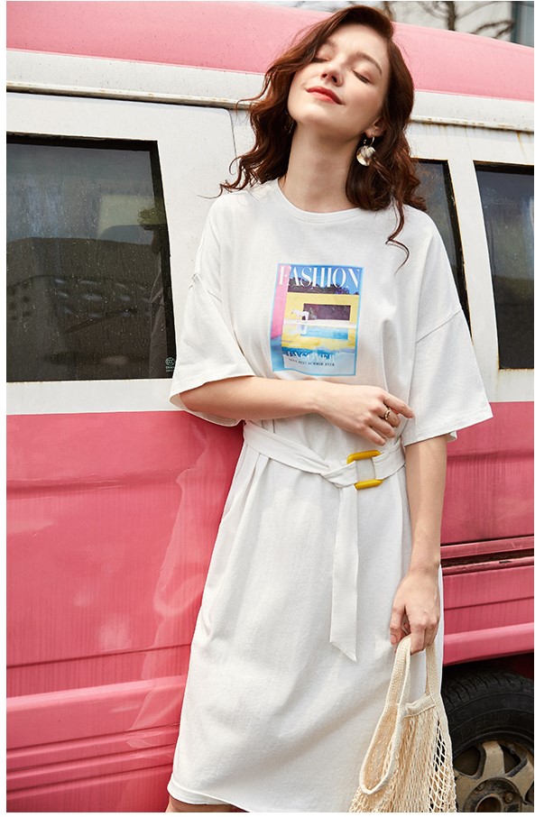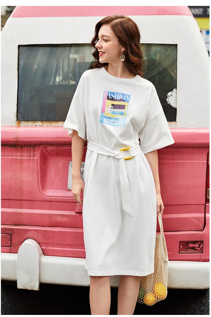 ARTKA TIE WAIST T SHIRT DRESS WITH PRINT