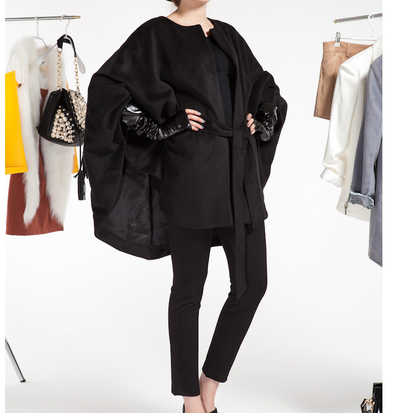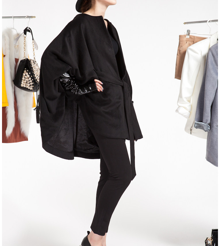 C4MORE HIPSTER MASTER YODA WOOLEN MID LENGTH CLOAK COAT IN BLACK