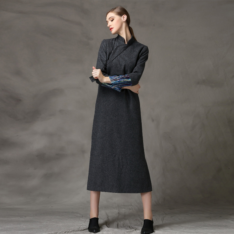 C4MORE HIPSTER MASTER YODA HIGH NECK ETHNIC STYLE WOOLEN LONG DRESS