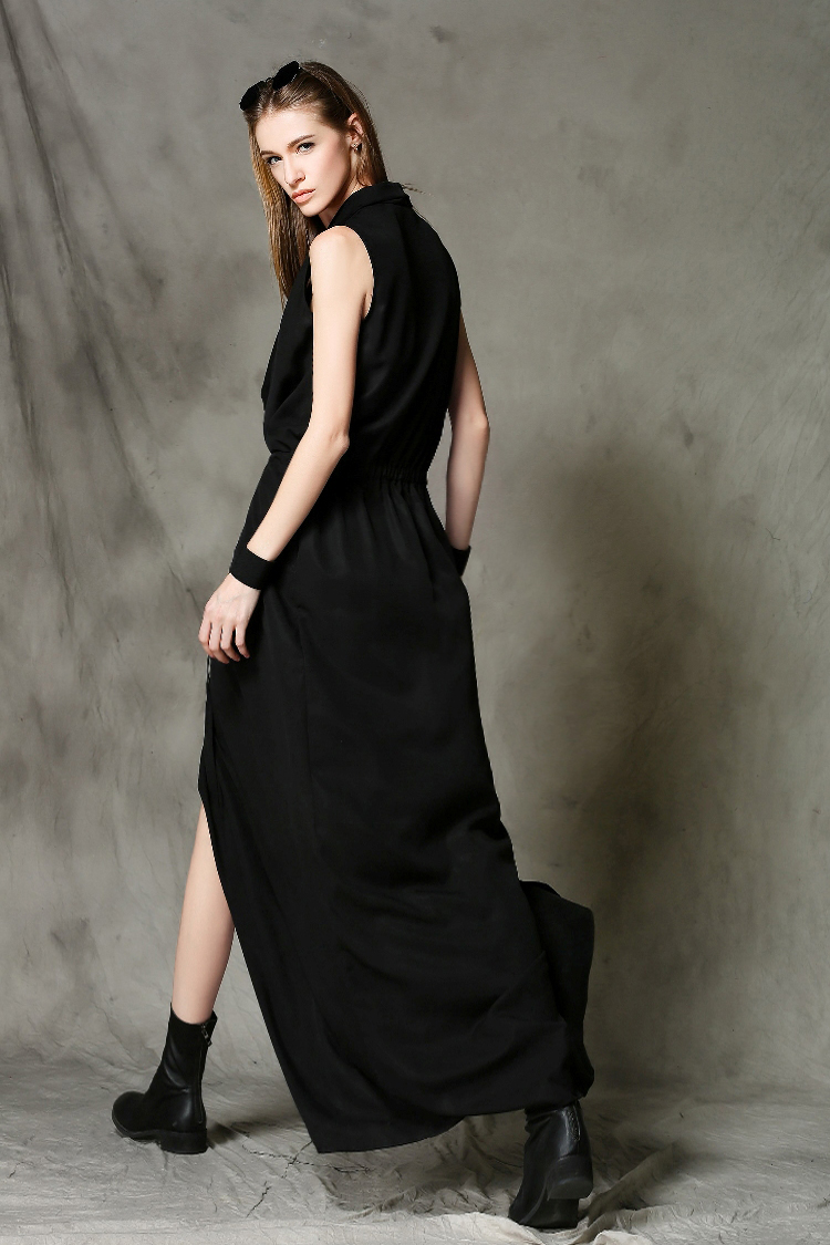 C4MORE HIPSTER MASTER YODA TENCEL SWING COLLAR LONG DRESS WITH POCKET