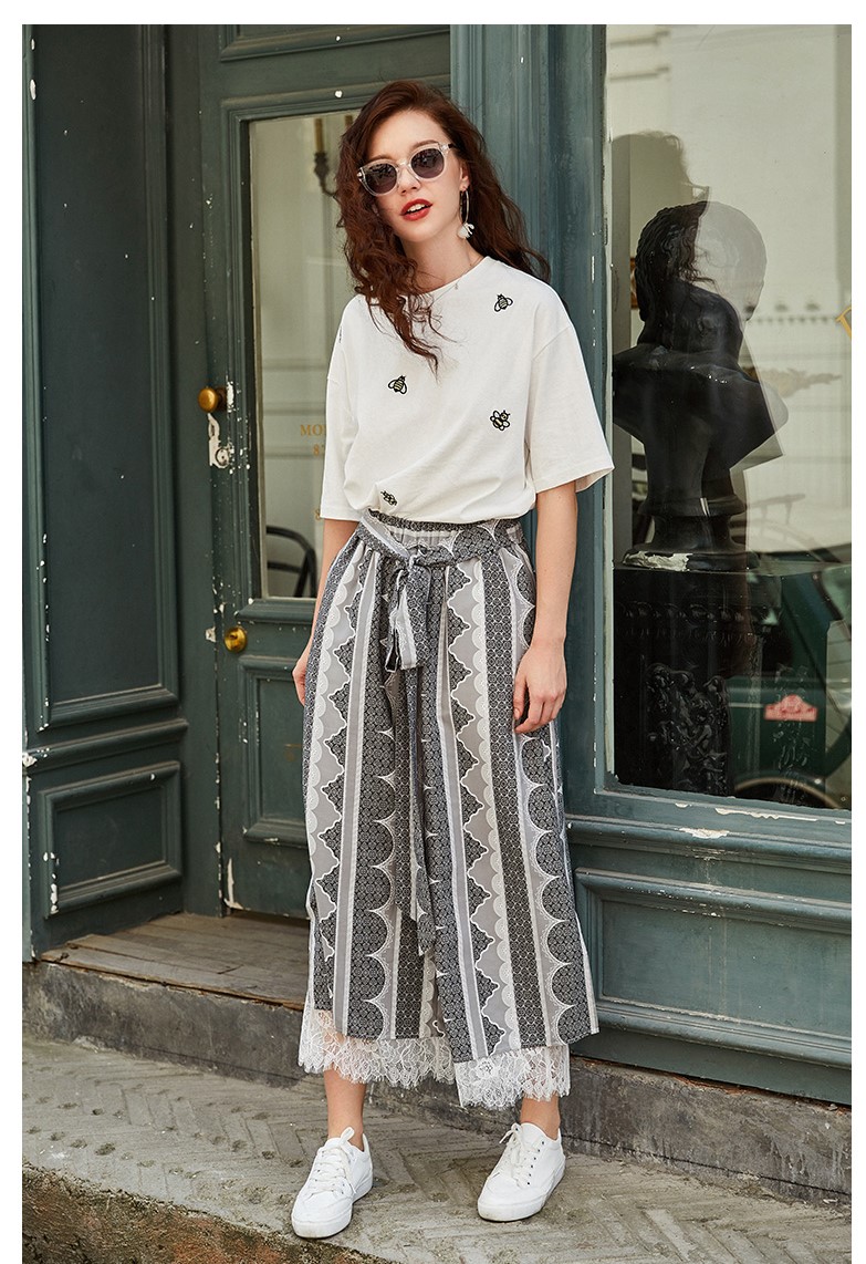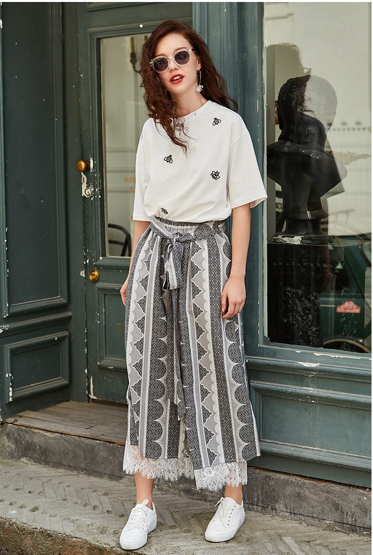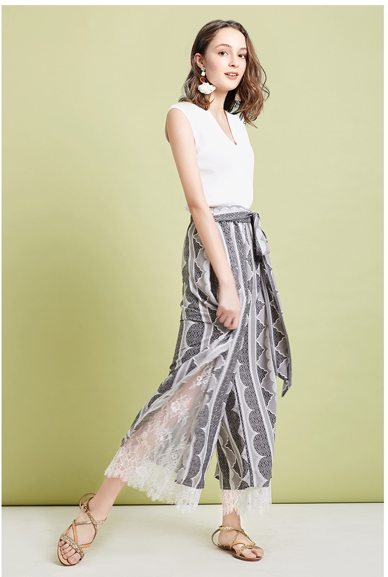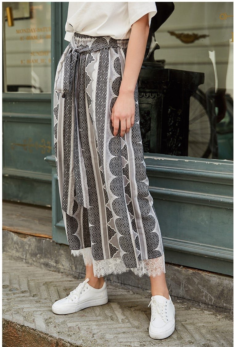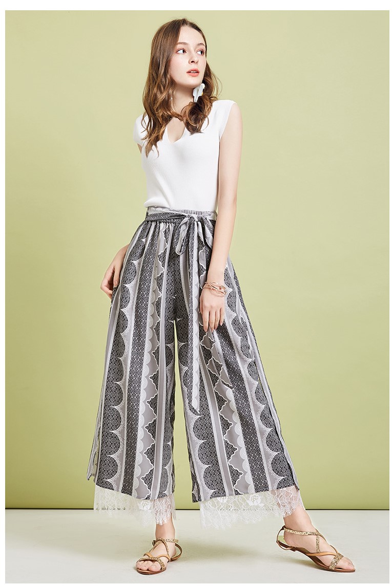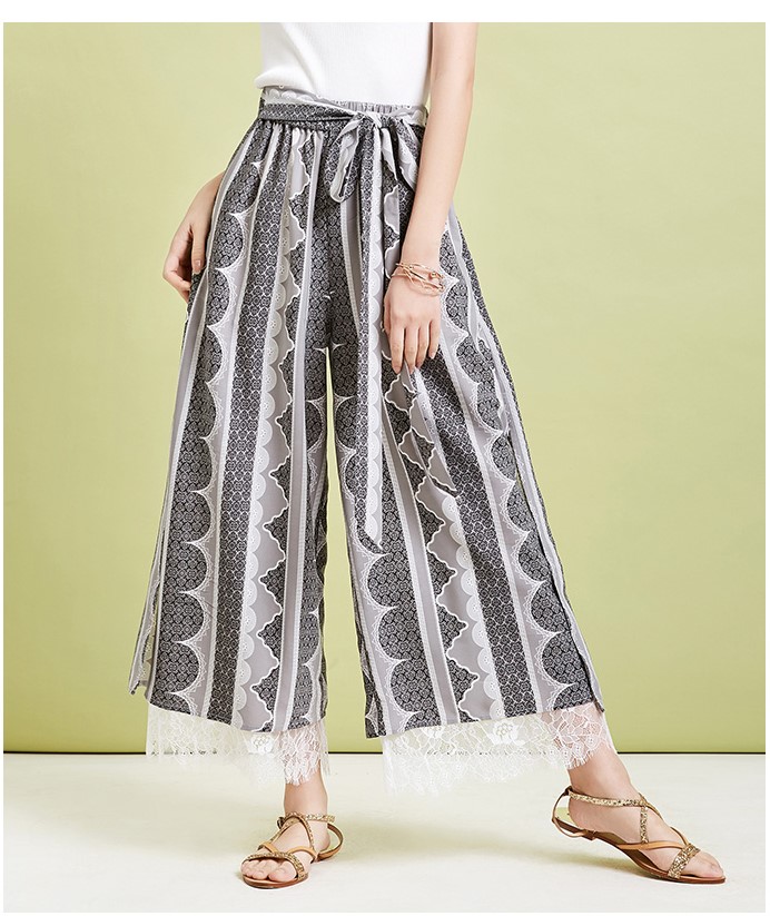 ARTKA SIDE SPLIT WIDE LEG LACE TRIM TROUSERS IN PRINT