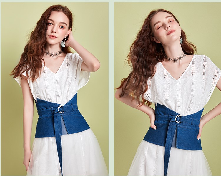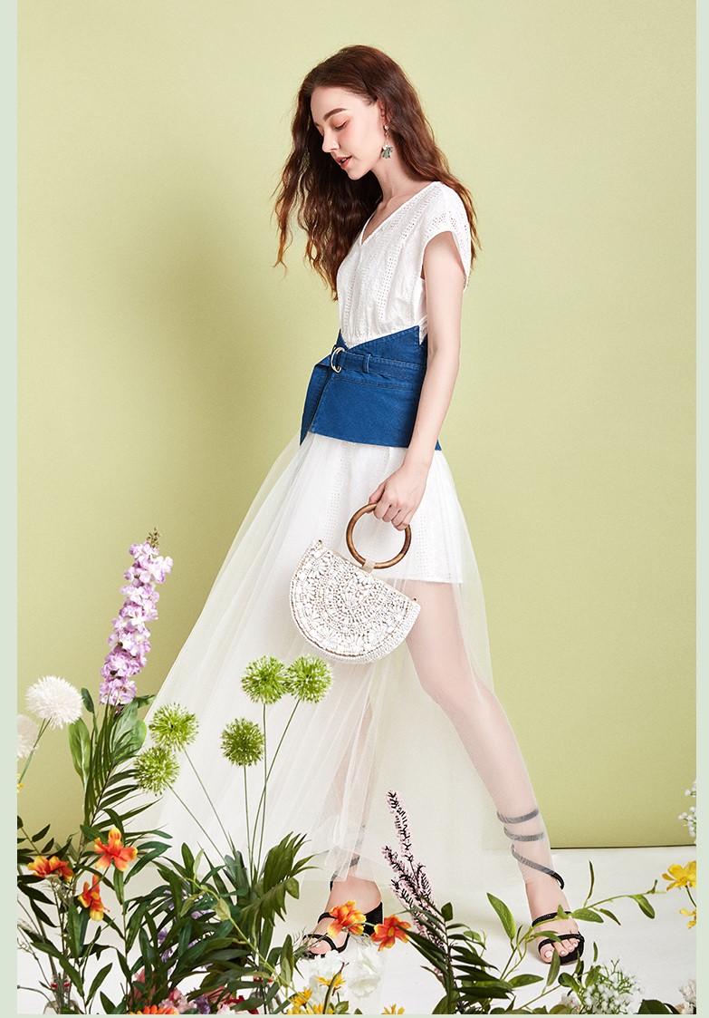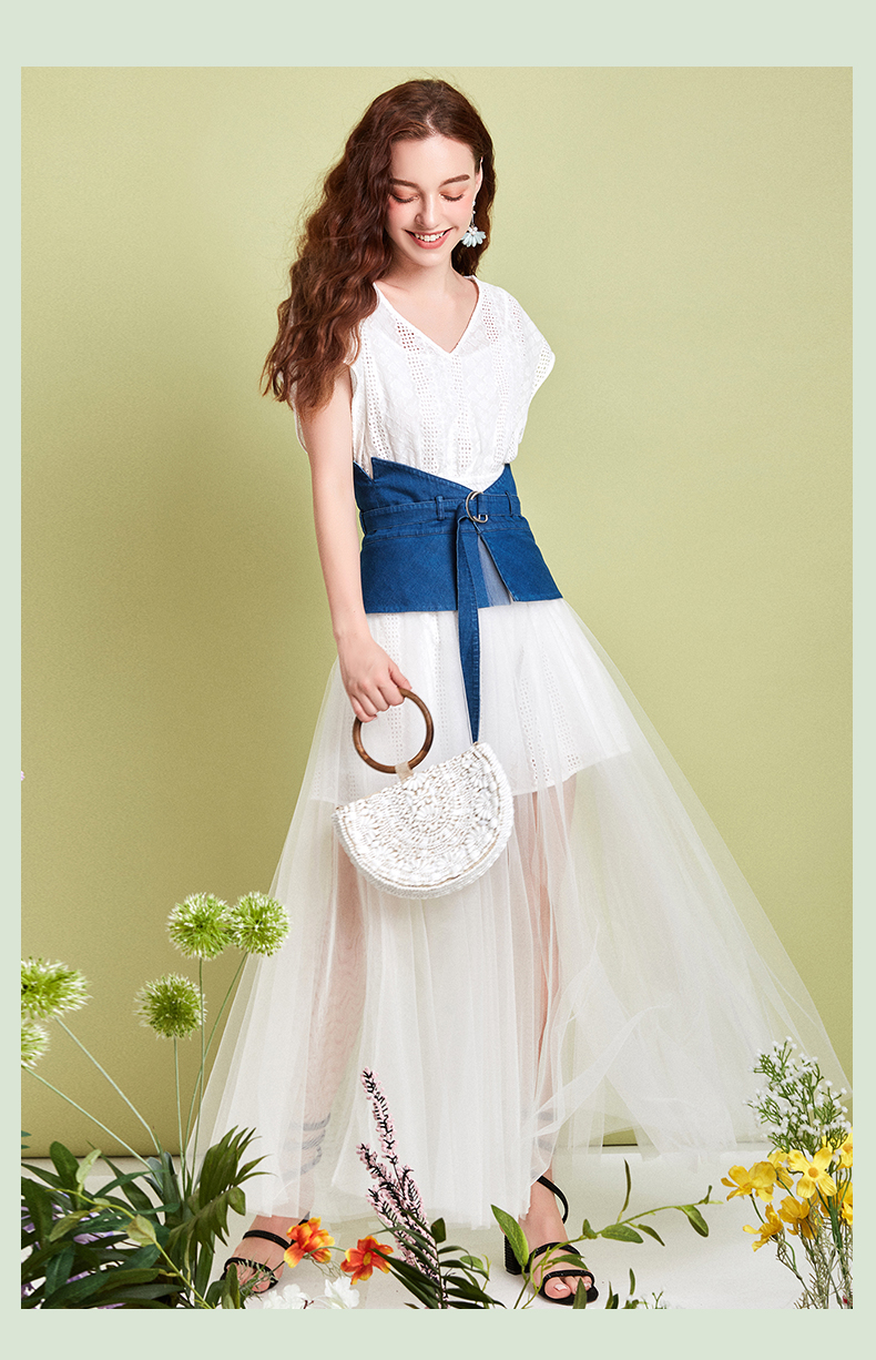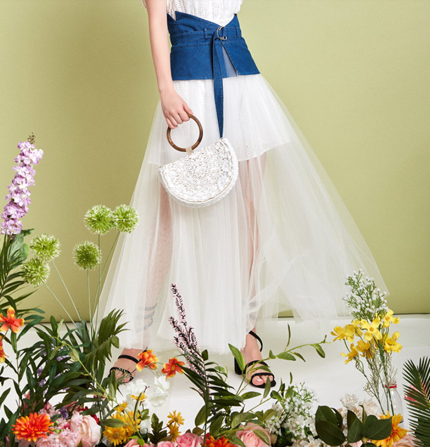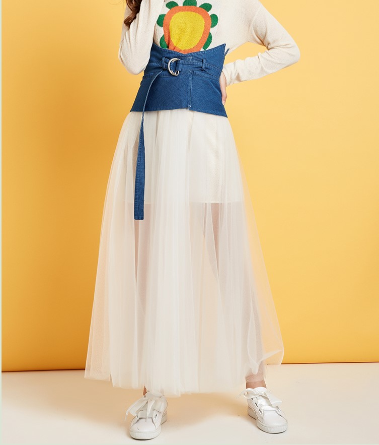 ARTKA HIGH DENIM WAIST MESH SKIRT