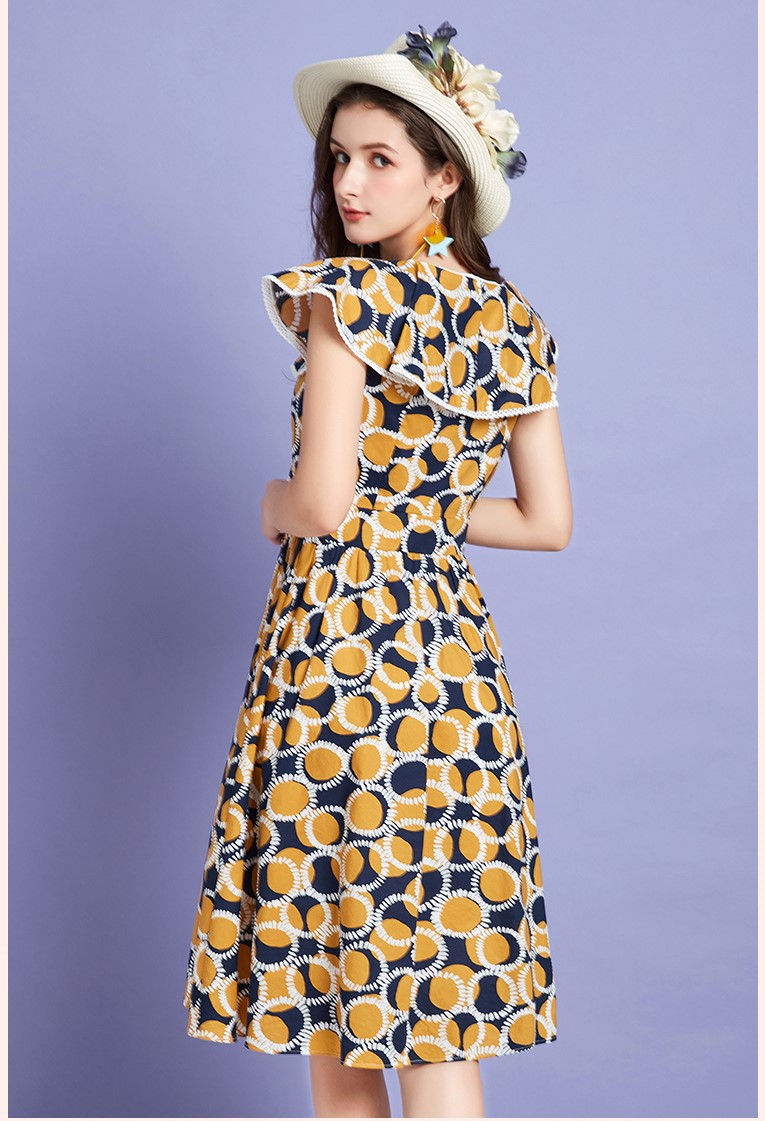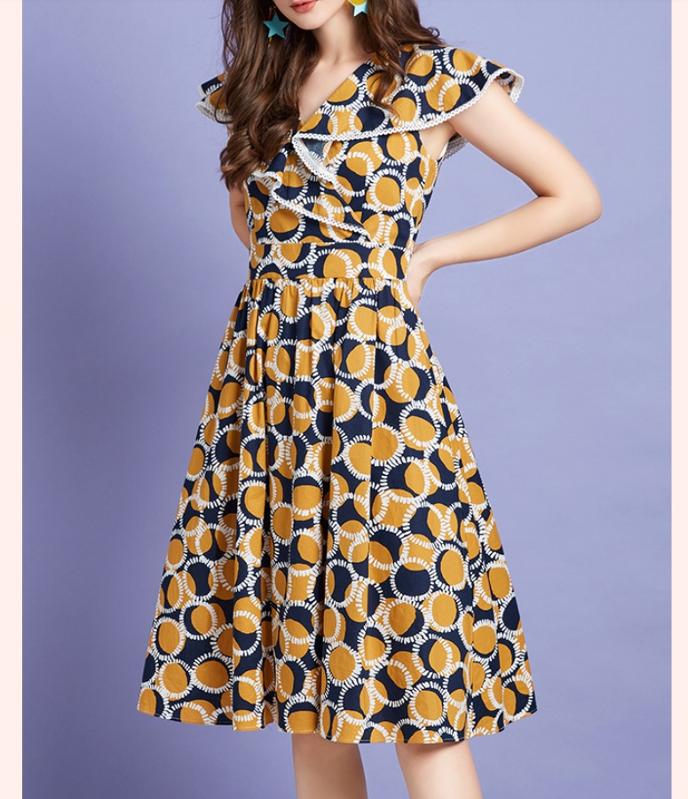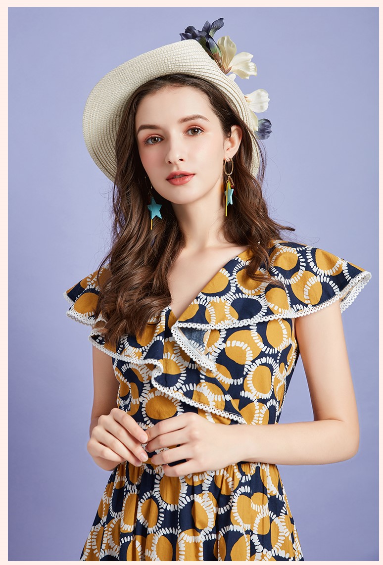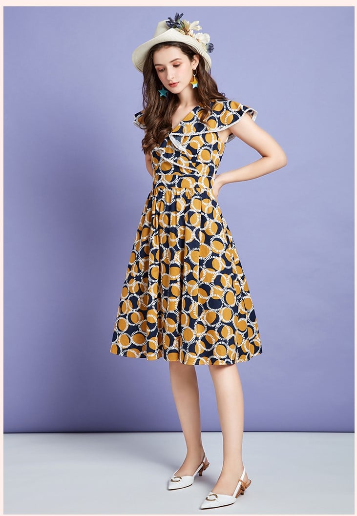 ARTKA FRILL V NECK MIDI DRESS WITH OVERSIZED POLKA DOT PRINT