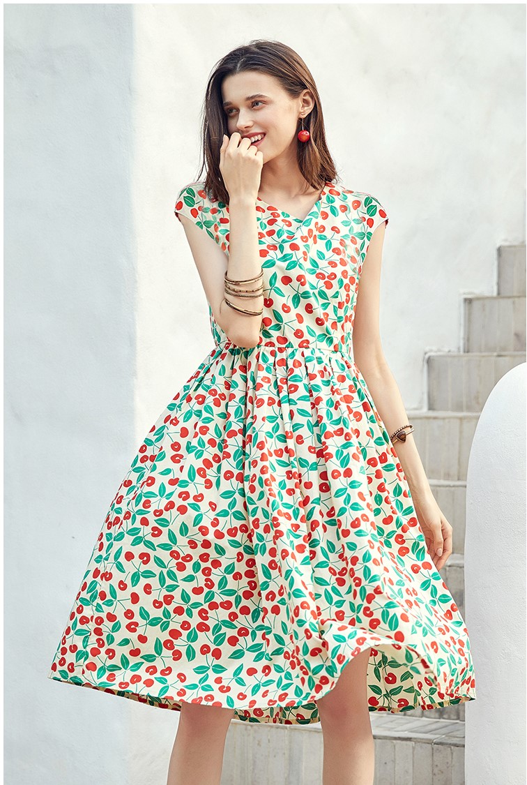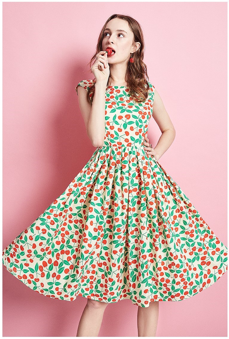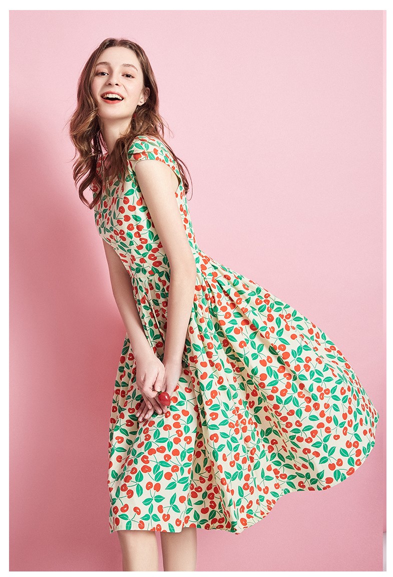 ARTKA ALL OVER CHERRY PRINT SKATER DRESS