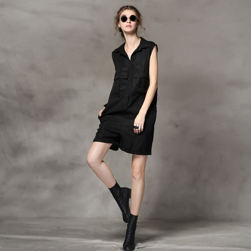 C4MORE HIPSTER LONDON URBAN STYLE SLEEVELESS CASUAL JUMPSUIT IN BLACK