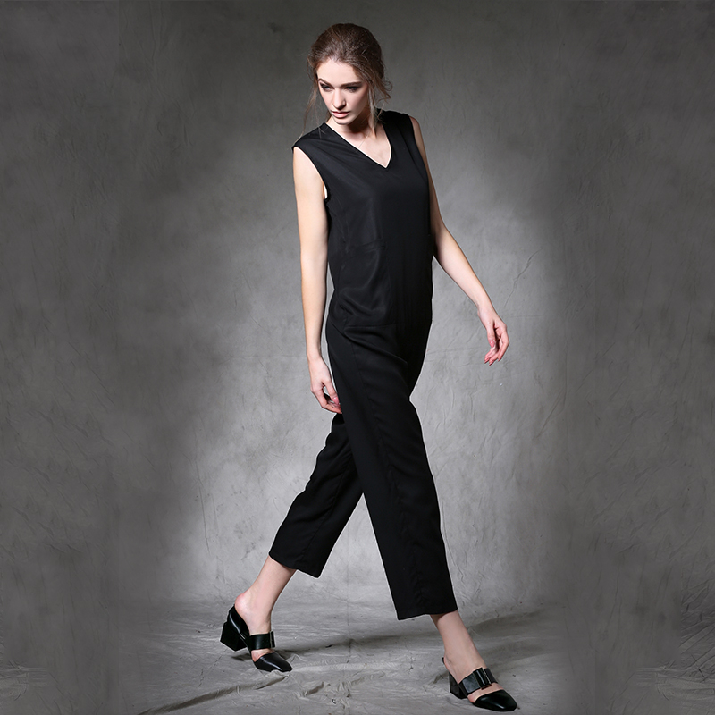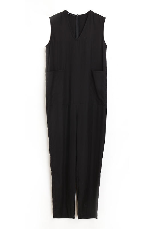 C4MORE HIPSTER FRENCH STYLE V NECK WIDE LEG JUMPSUIT IN BLACK