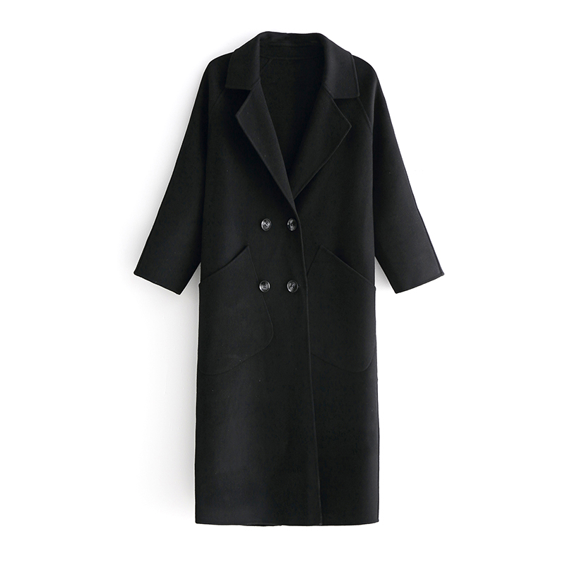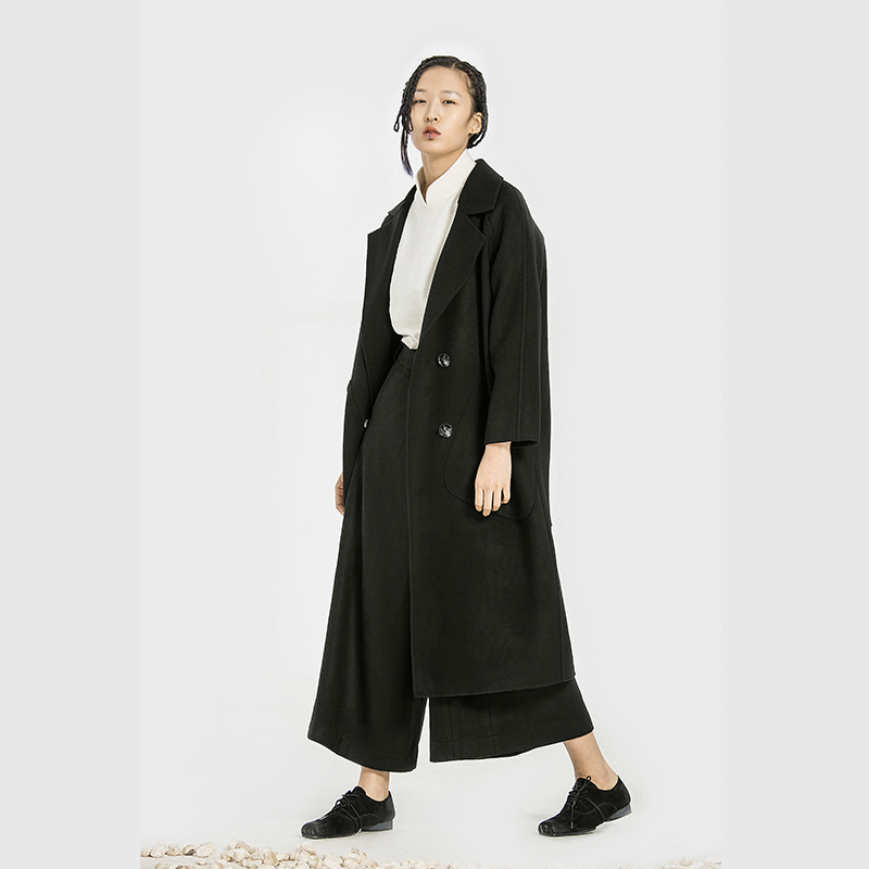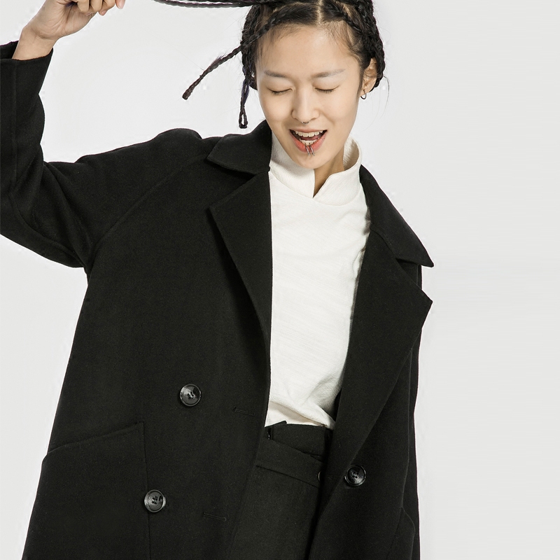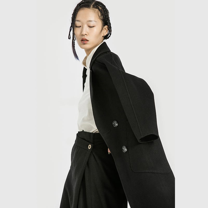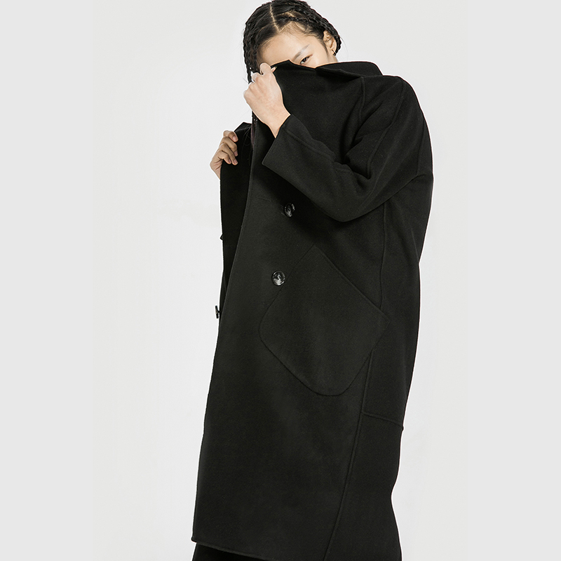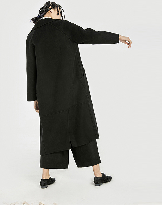 C4MORE HIPSTER JAPANESE URBAN STYLE HANDMADE MID LENGTH BLACK COAT
