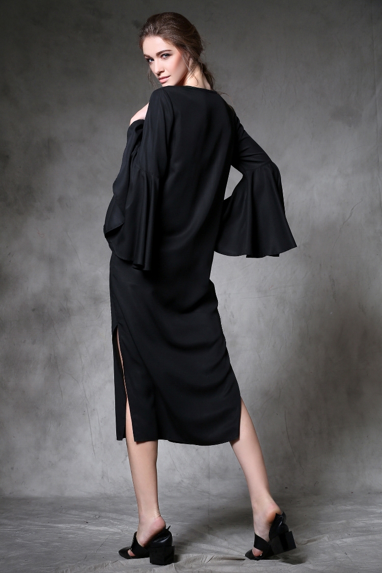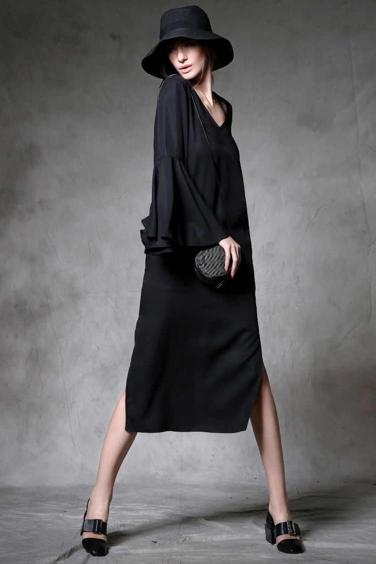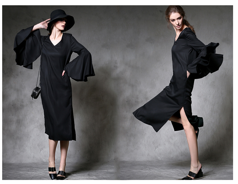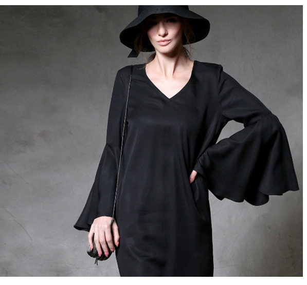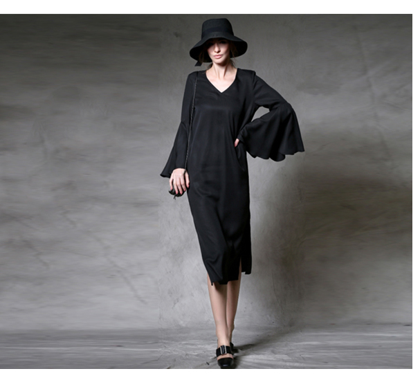 C4MORE HIPSTER MASTER YODA V NECK MID LENGTH ELEGANT DRESS WITH LEAF SLEEVE