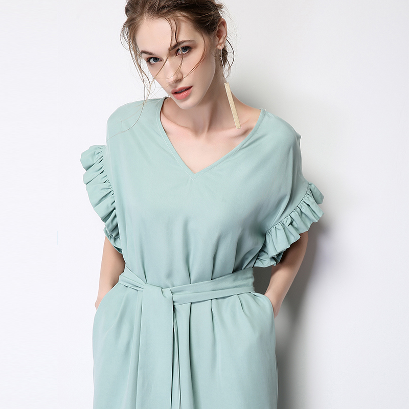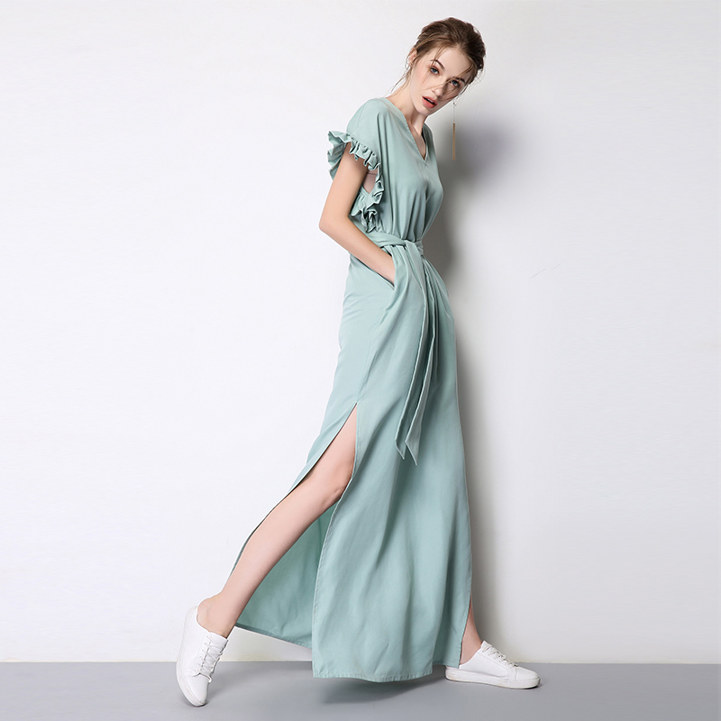 C4MORE JEZZO TENZELLO V NECK CASUAL LONG DRESS WITH SLIT