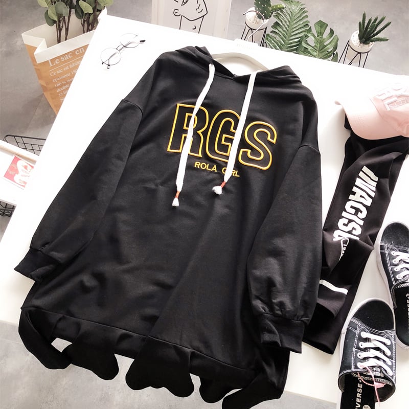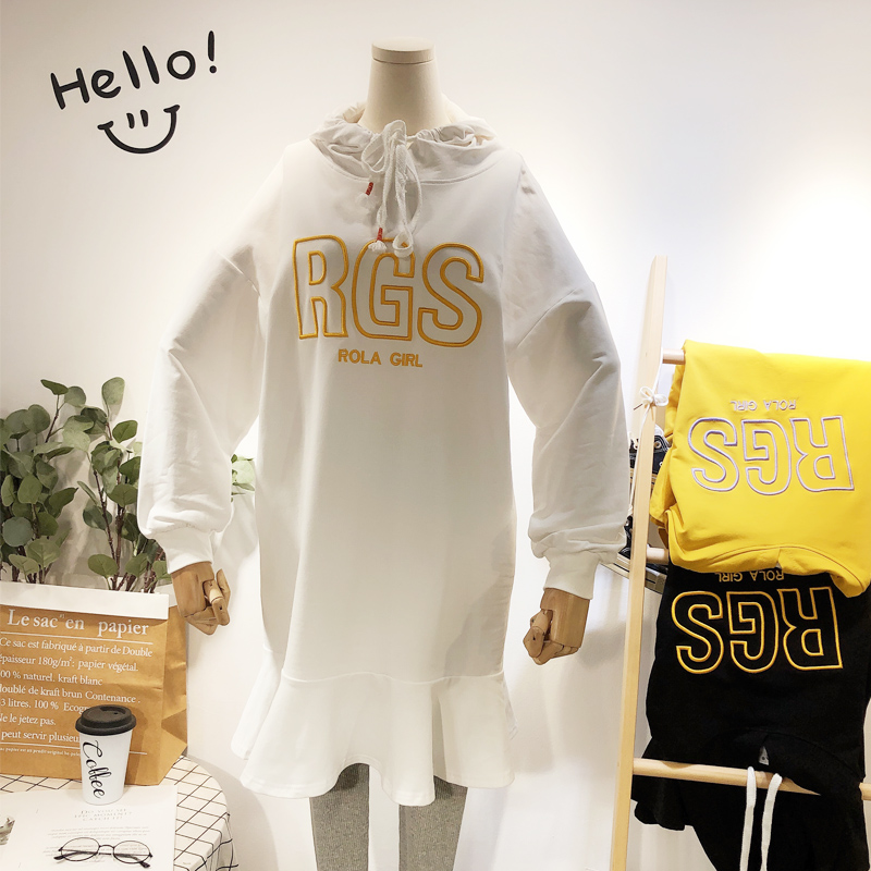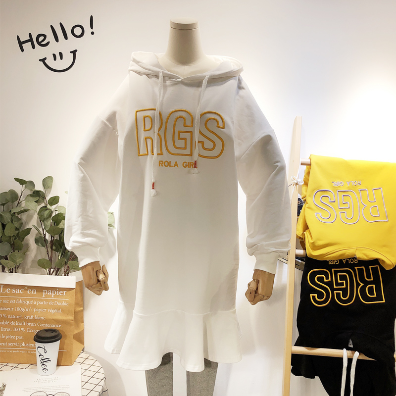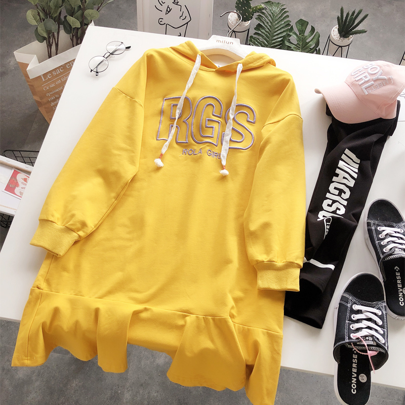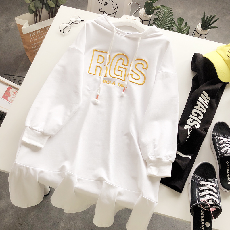 BOOPDO DESIGN RGS EMBROIDERY FRILL HEM HOODIE DRESS