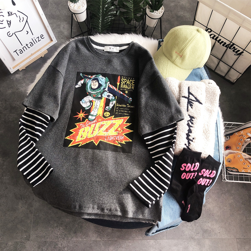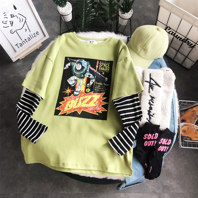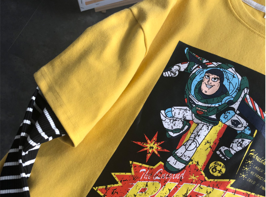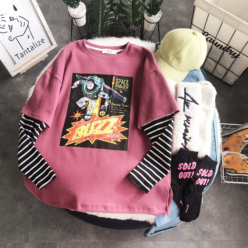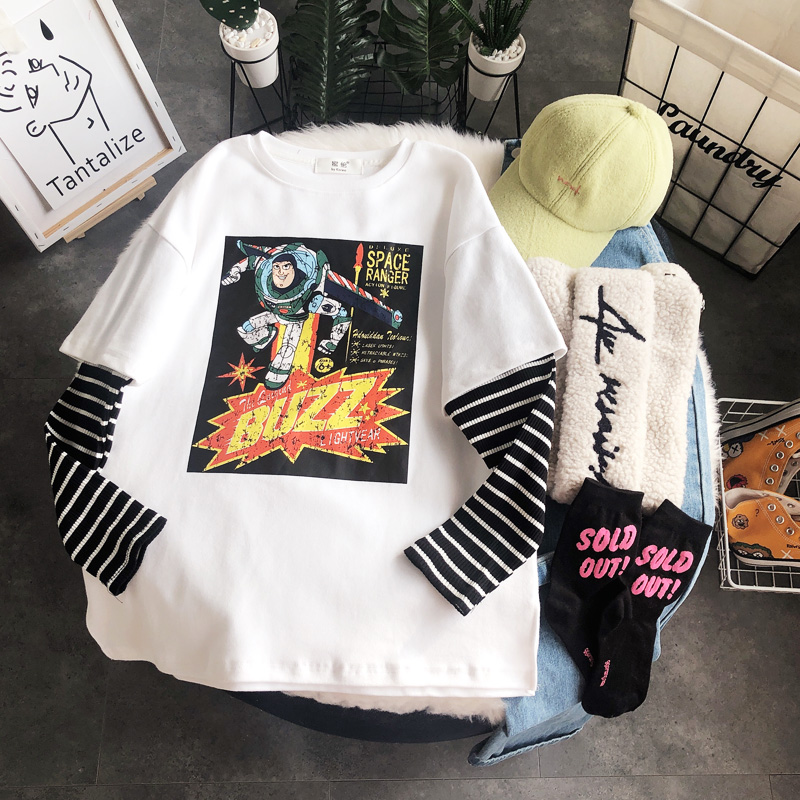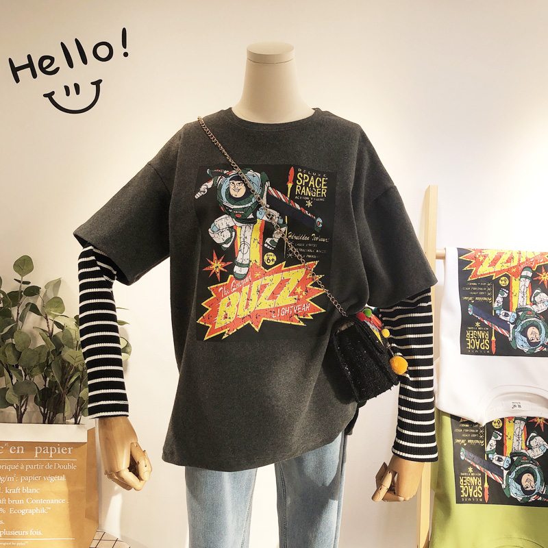 BOOPDO DESIGN LONGLINE LONG SLEEVE PRINT T SHIRT WITH DOUBLE LAYER SLEEVE