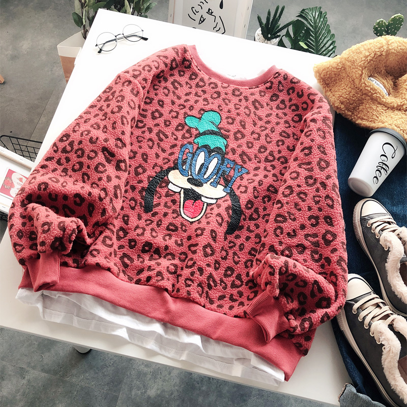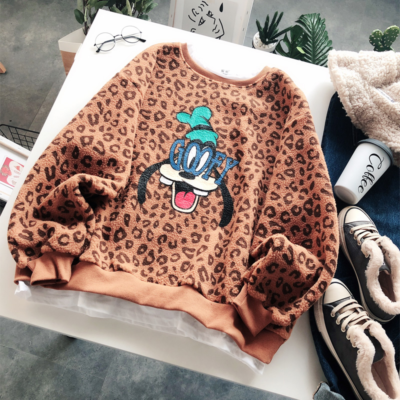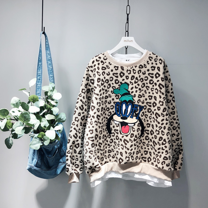 BOOPDO DESIGN LEOPARD SWEATSHIRT WITH CARTOON PRINT