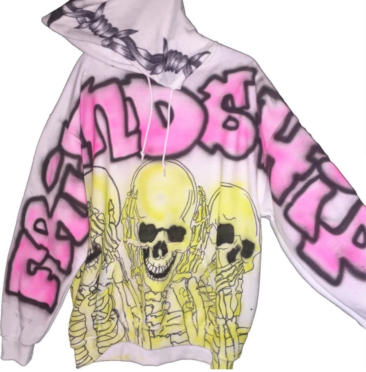 SARO DOLL SKILL SKULL GRAFFITI HAND PAINTED HOODIE SWEATSHIRT