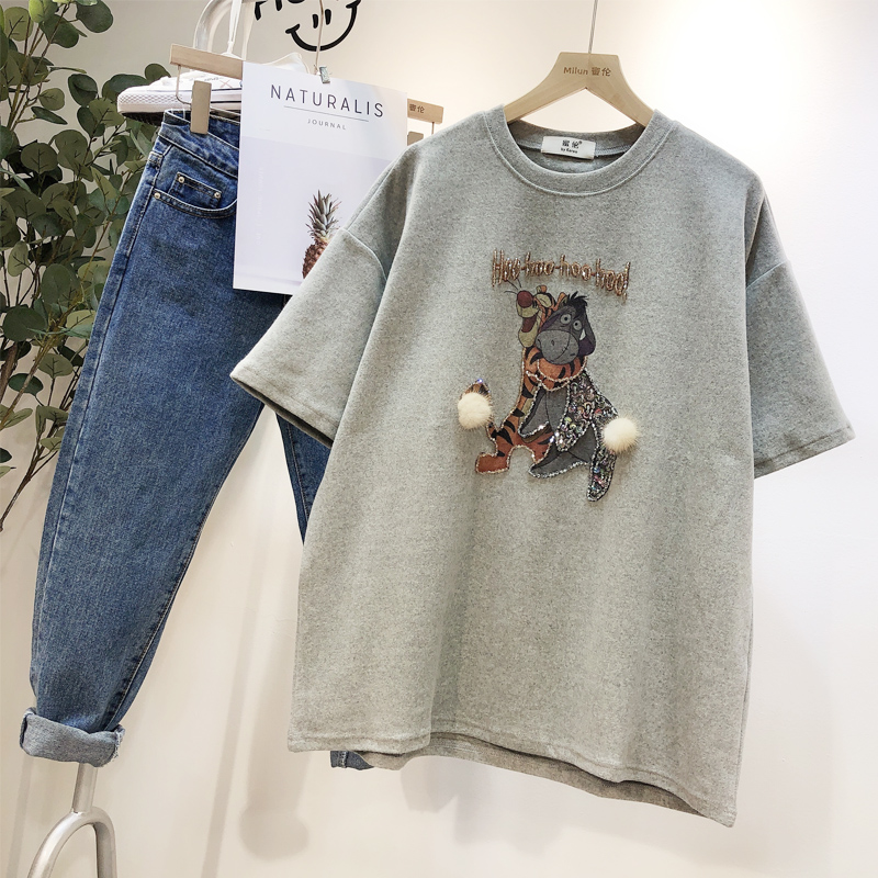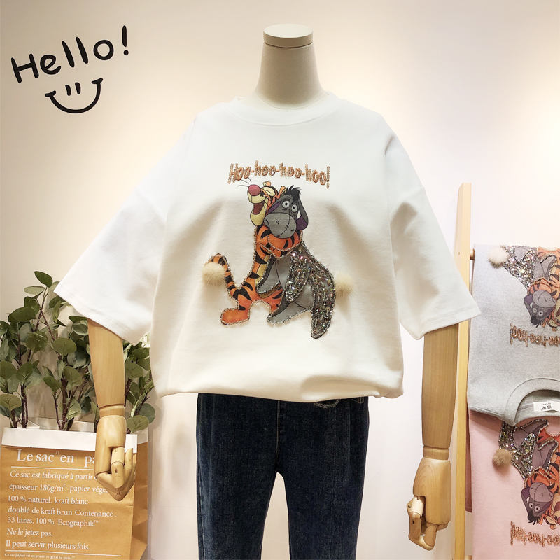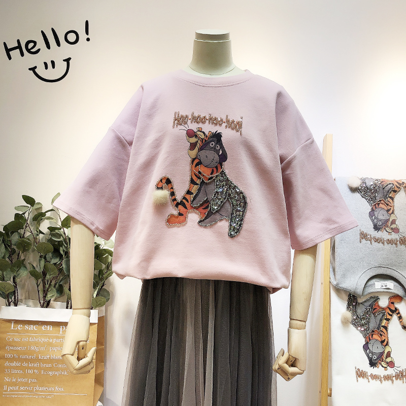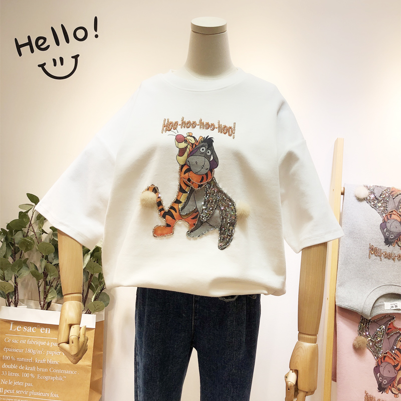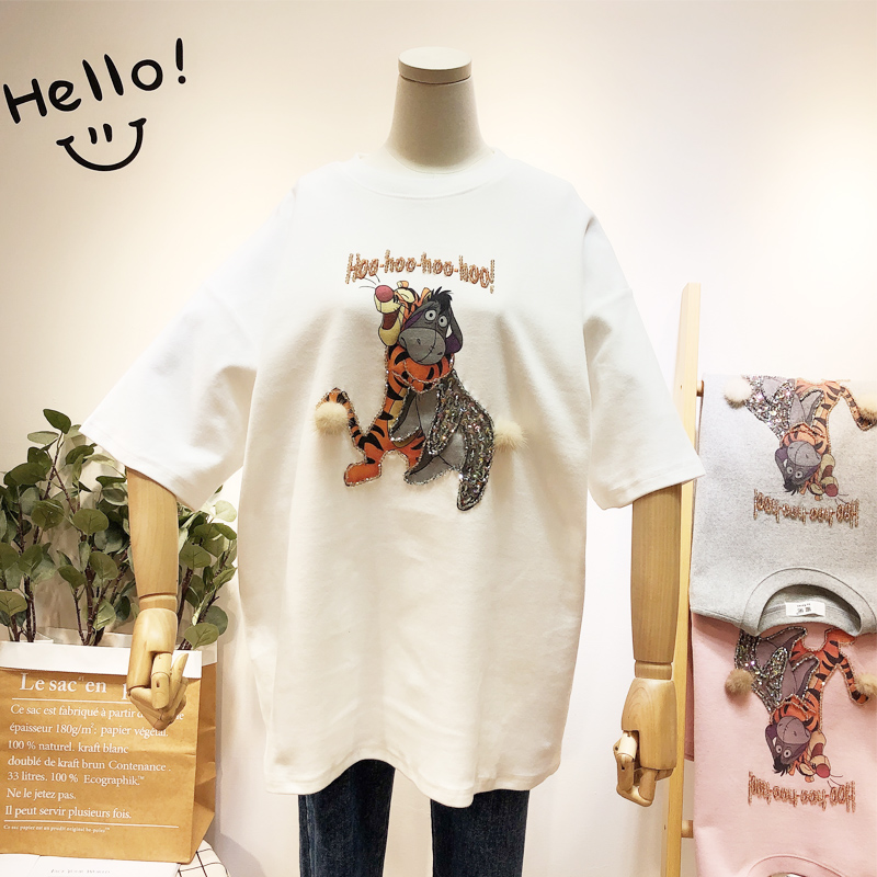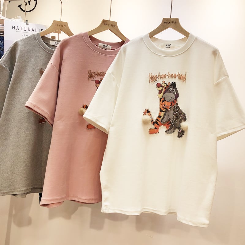 BOOPDO DESIGN EEYORE AND TIGER EMBROIDERY T SHIRT