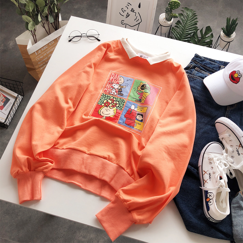 BOOPDO DESIGN COLLARED SWEATSHIRT WITH SNOOPY PRINT