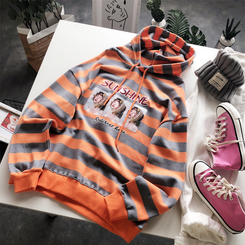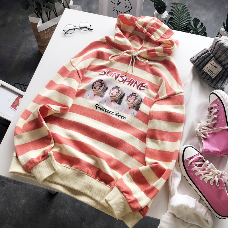 BOOPDO DESIGN VINTAGE STRIPED RELAXED HOODIE WITH PRINT