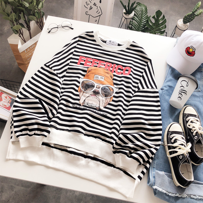 BOOPDO DESIGN FEFFRICO VINTAGE STRIPED SWEATSHIRT WITH ASYMMETRIC HEM