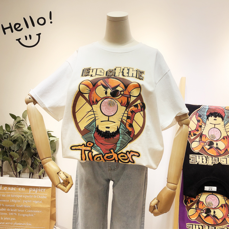 BOOPDO DESIGN EYE OF THE TIGER PRINT T SHIRT