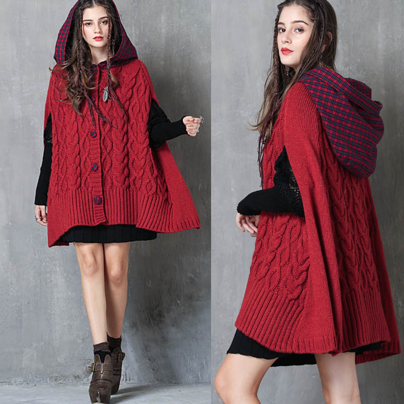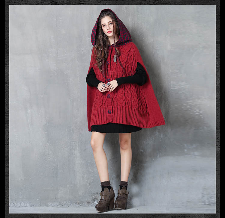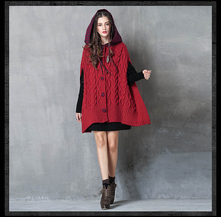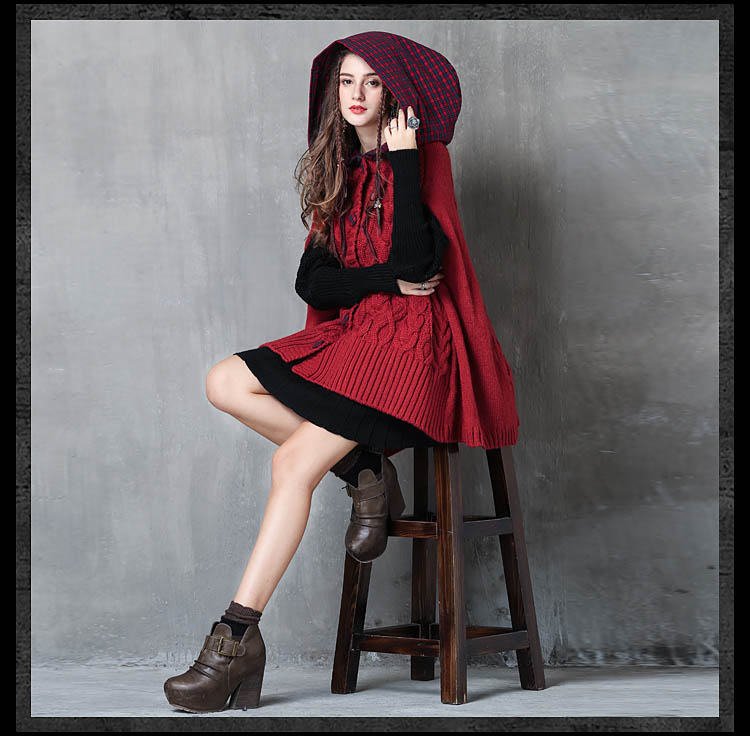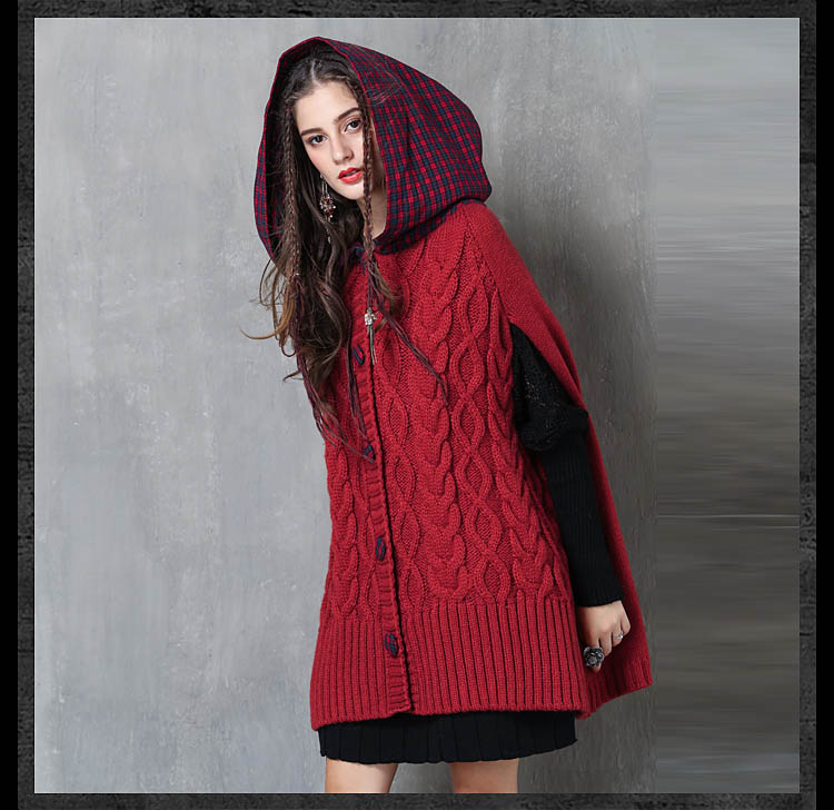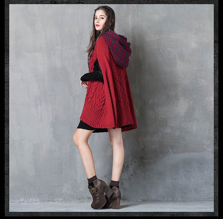 ARTKA KEER RETRO STYLE PLAID KNITTED HOODIE SWEATER IN RED