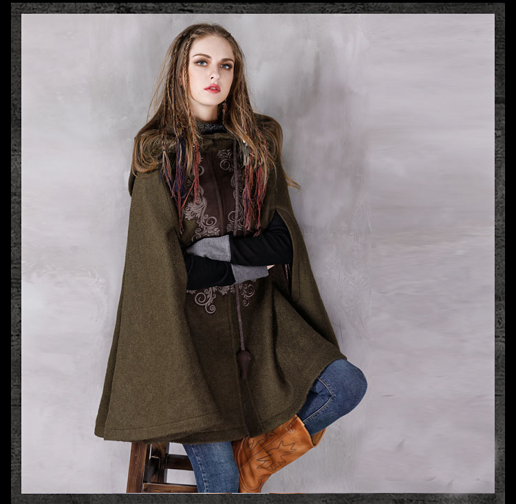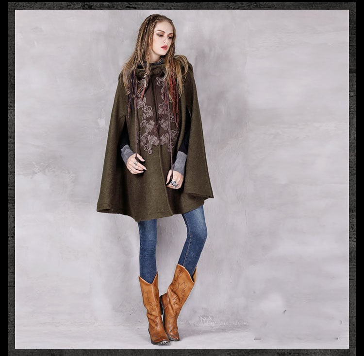 ARTKA KEER BRITISH RETRO STYLE PANCHO WOOLEN COAT IN DARK GREEN