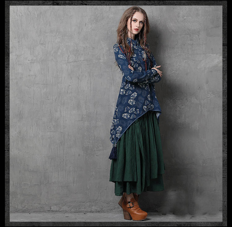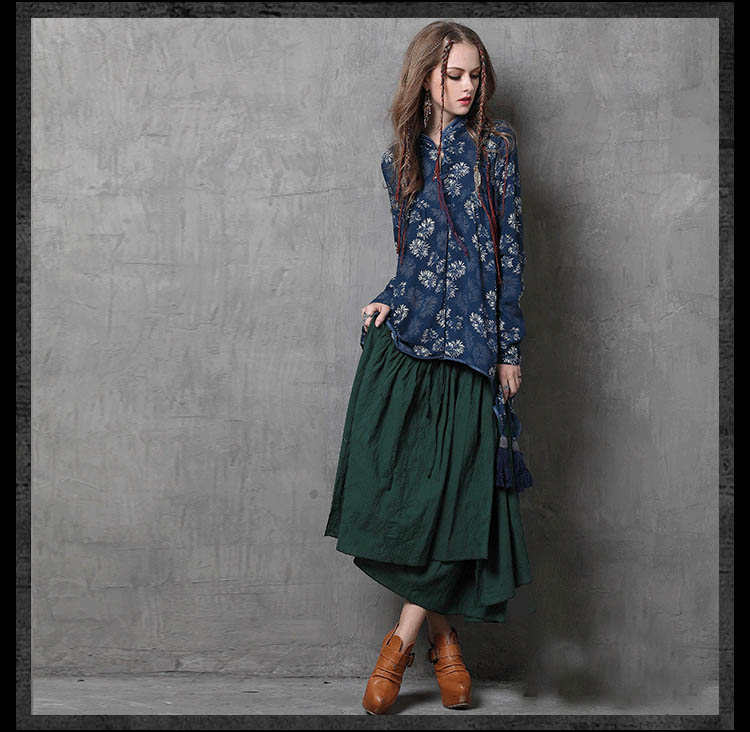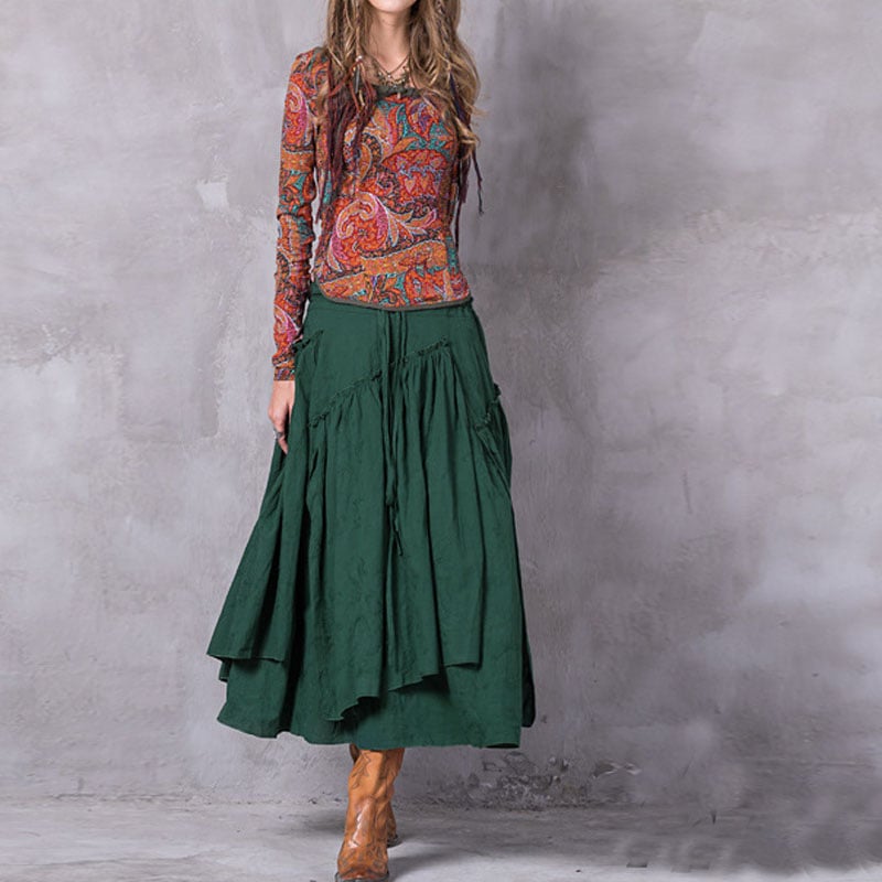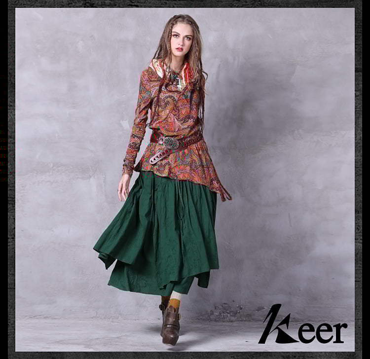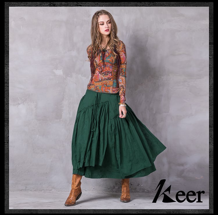 ARTKA VANNESSA KEER ETHNIC STYLE ASYMMETRIC LONG SKIRT IN GREEN