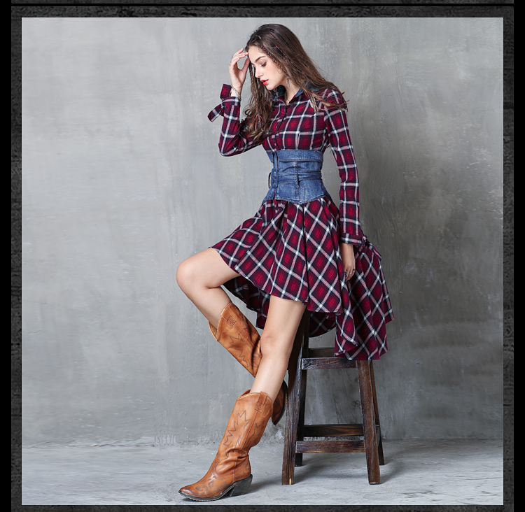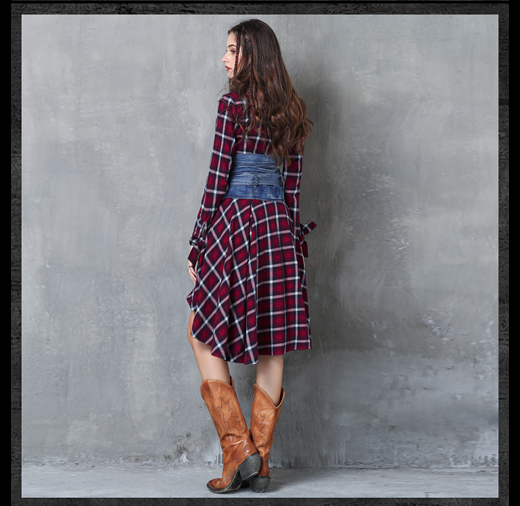 ARTKA ASHLEY KEER RETRO MID LENGTH ASYMMETRIC PLAID DRESS IN RED