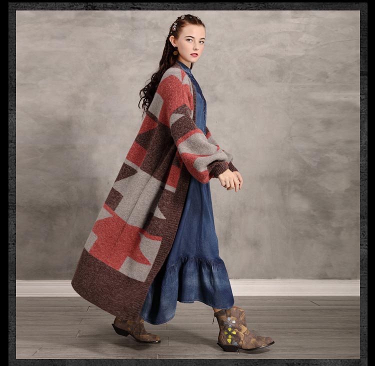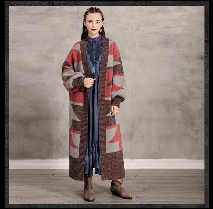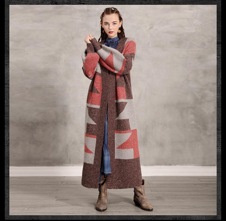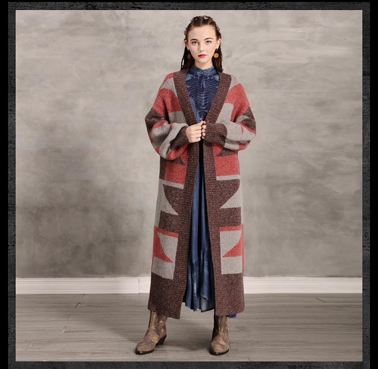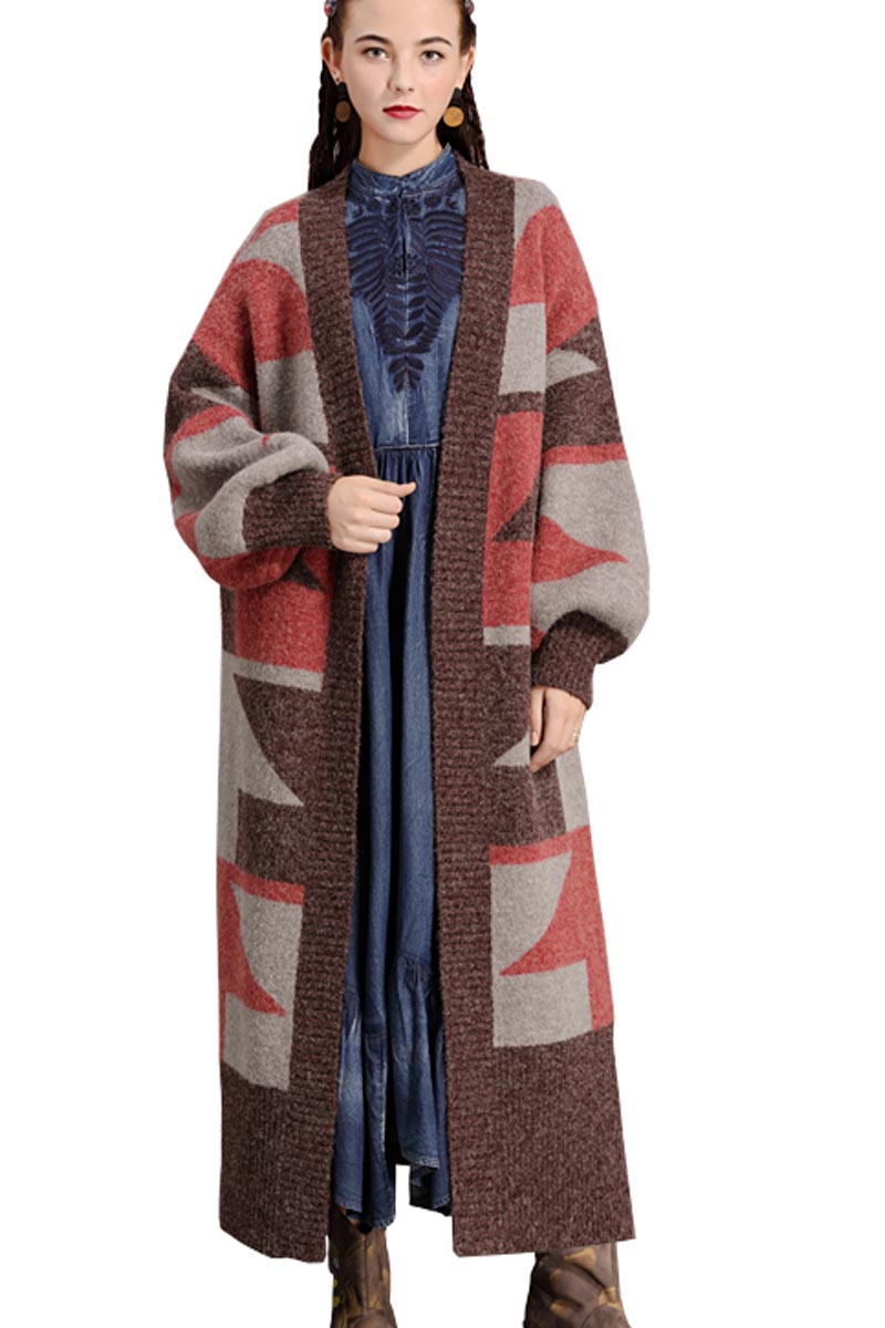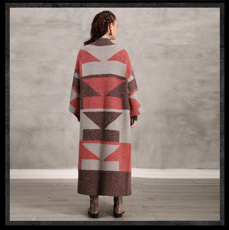 ARTKA ELLE KEER RETRO JACQUARD KNITTED LONG CARDIGAN