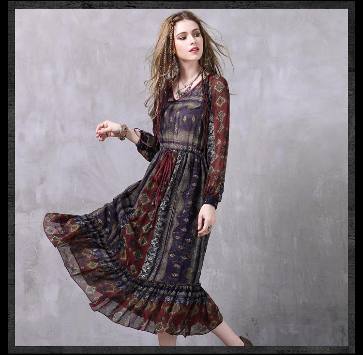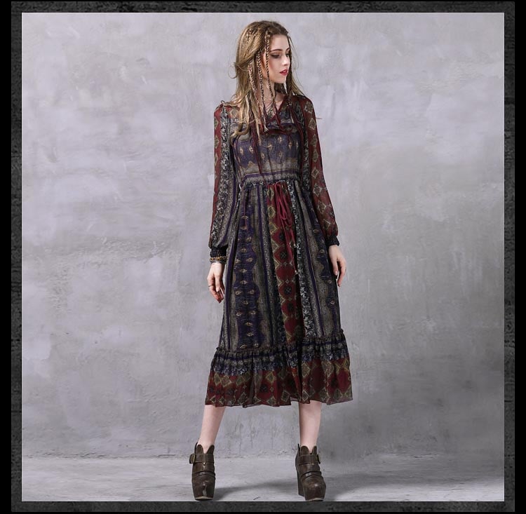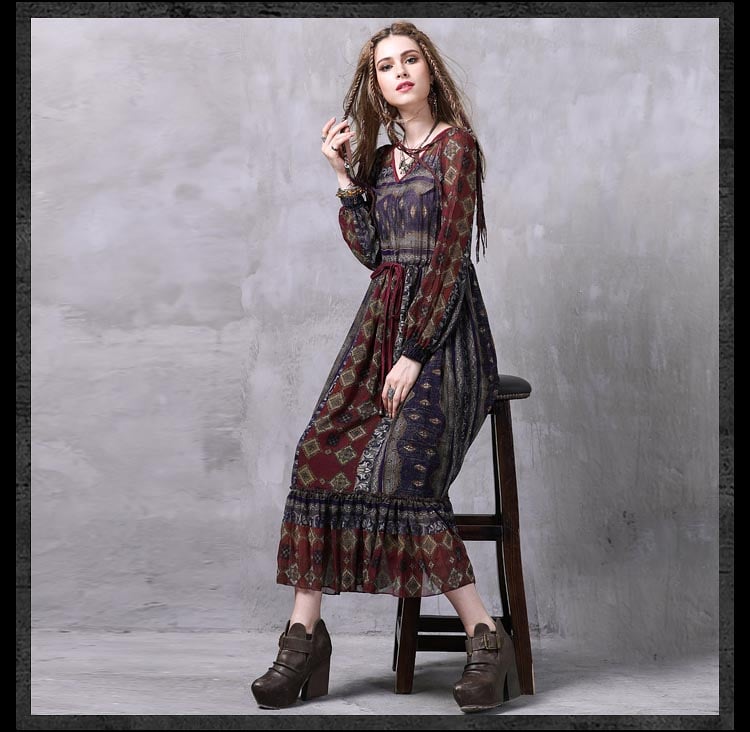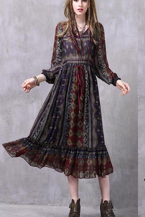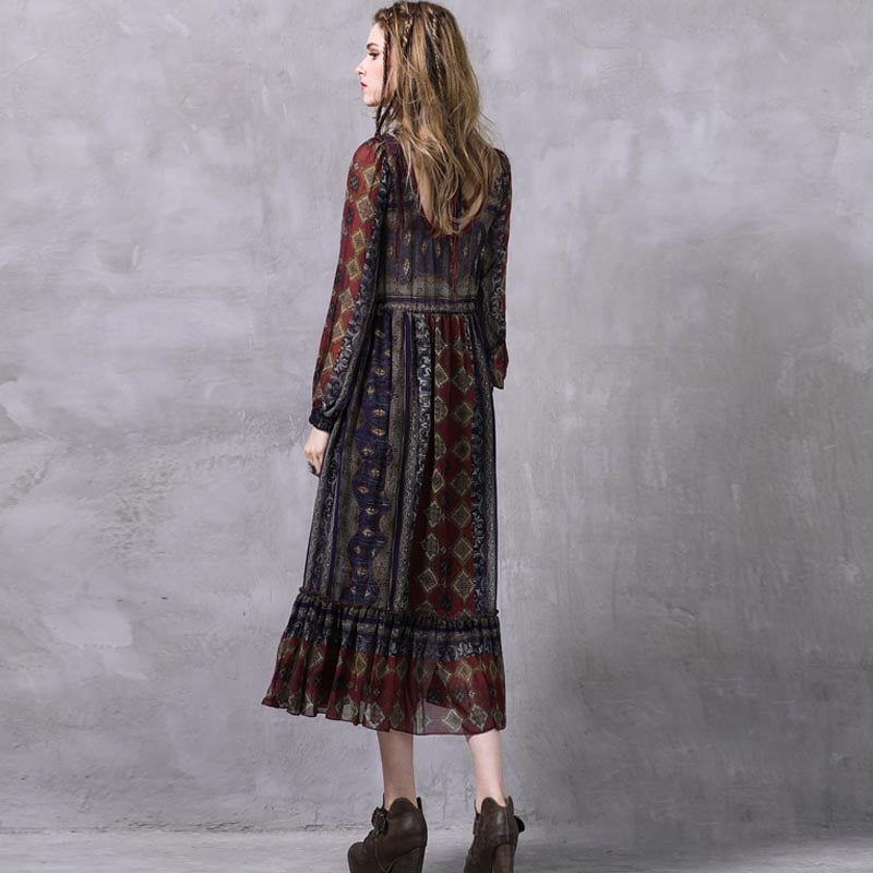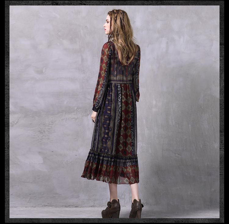 ARTKA KEER FRANSCISCO V NECK MID LENGTH LANTERN SLEEVE DRESS