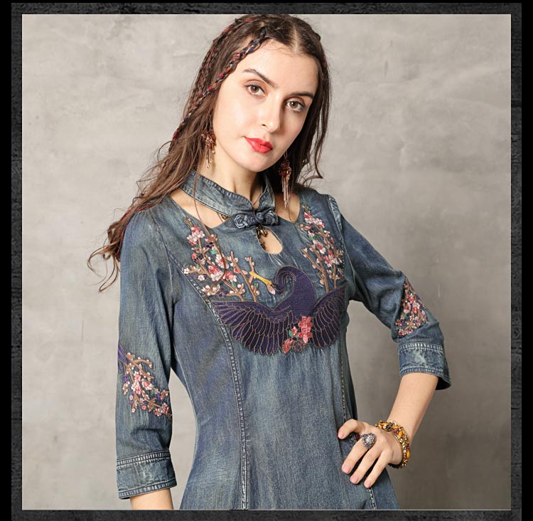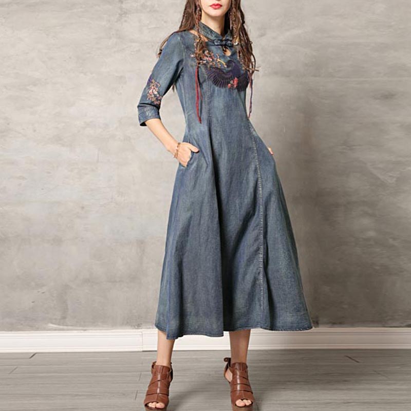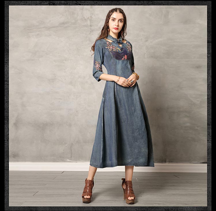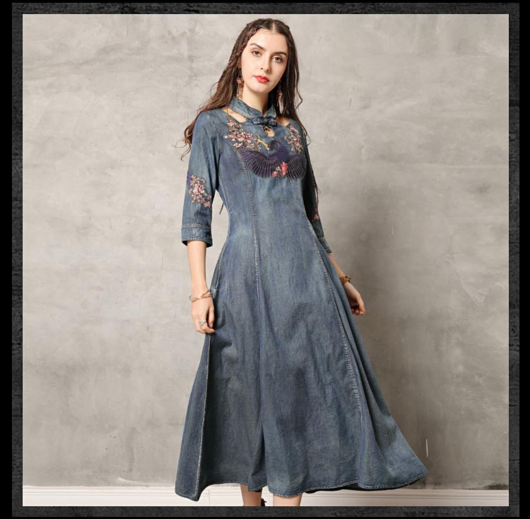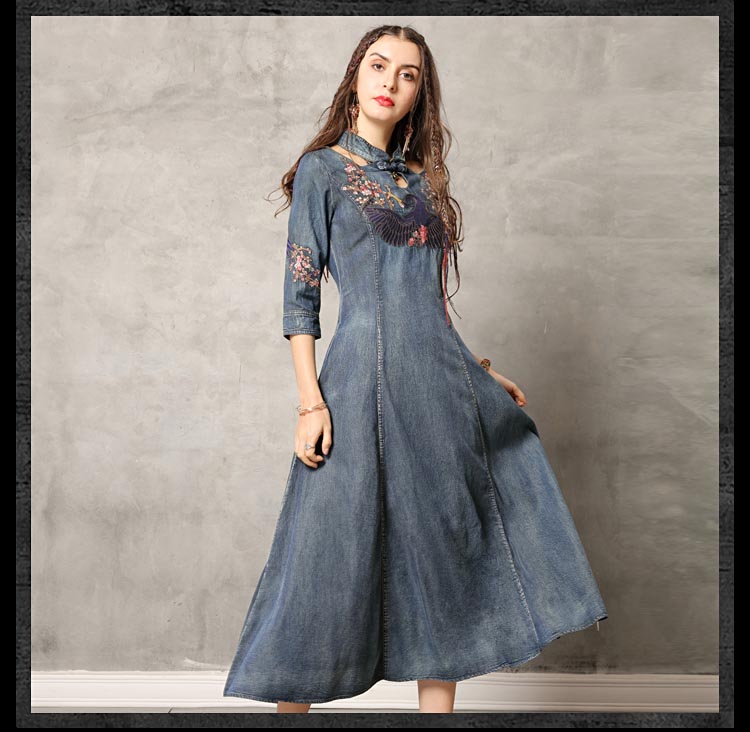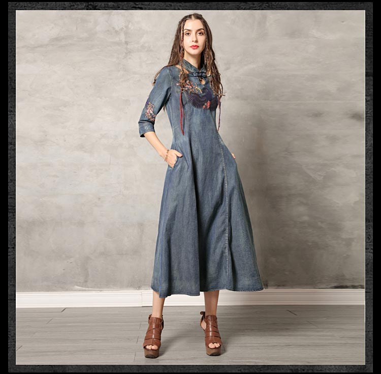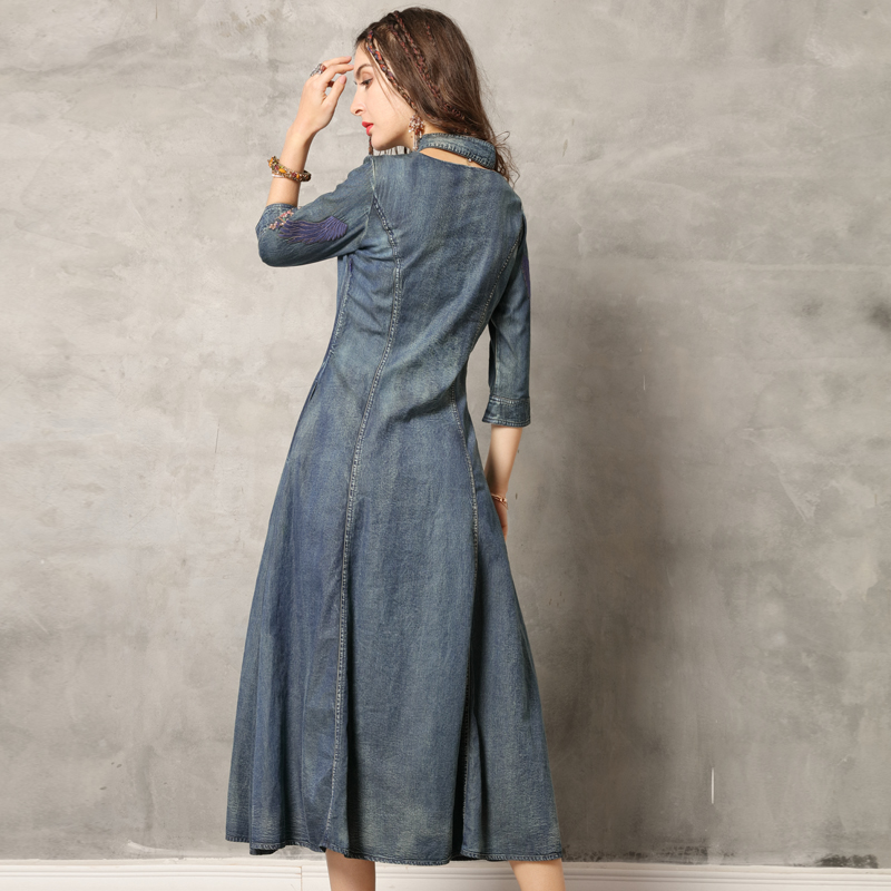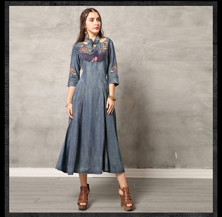 ARTKA KELSEY KEER MID LENGTH NORDIC STYLE DENIM JEAN MAXI DRESS