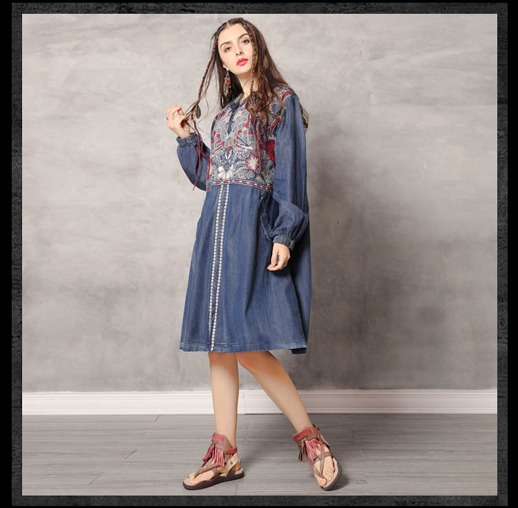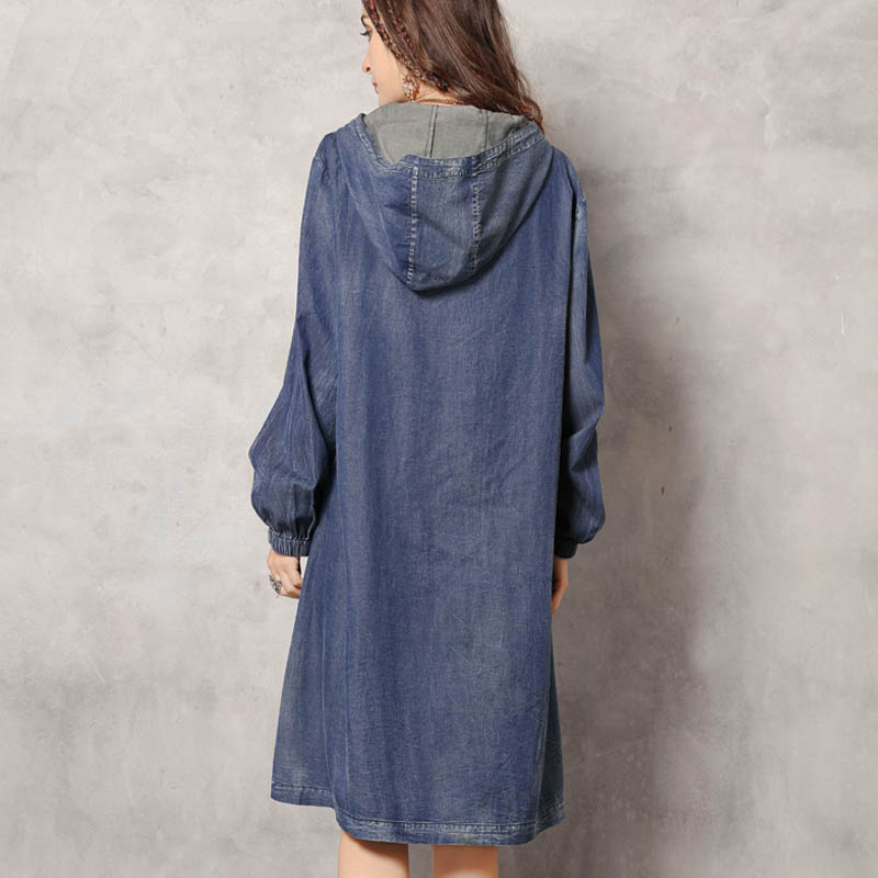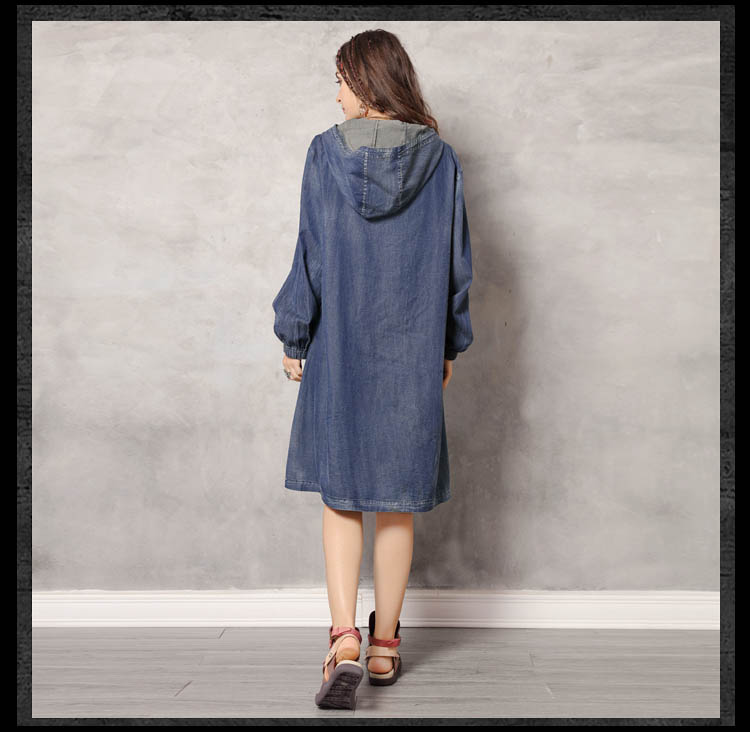 ARTKA TETOYAMON KEER NORDIC STYLE HOODED WINDBREAKER DENIM DRESS