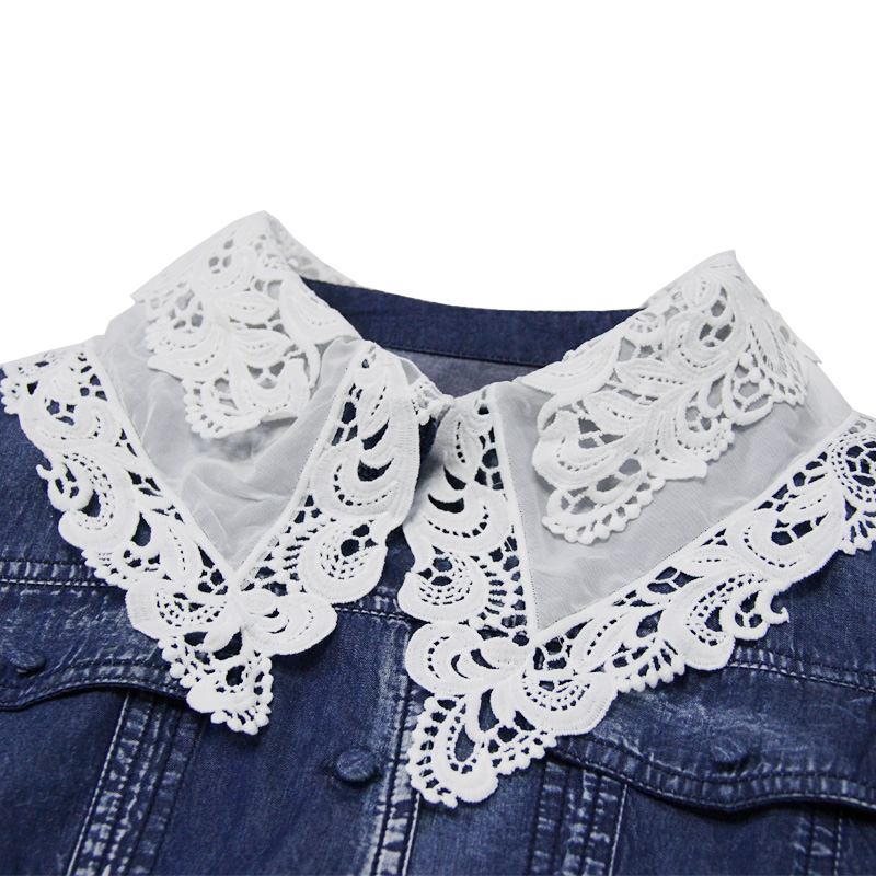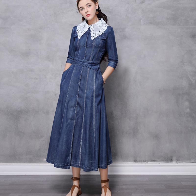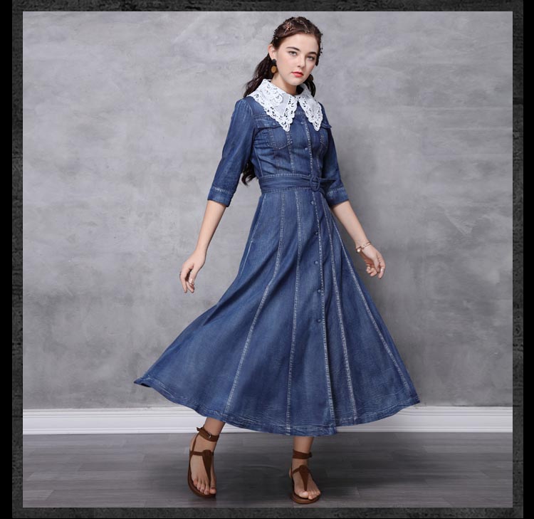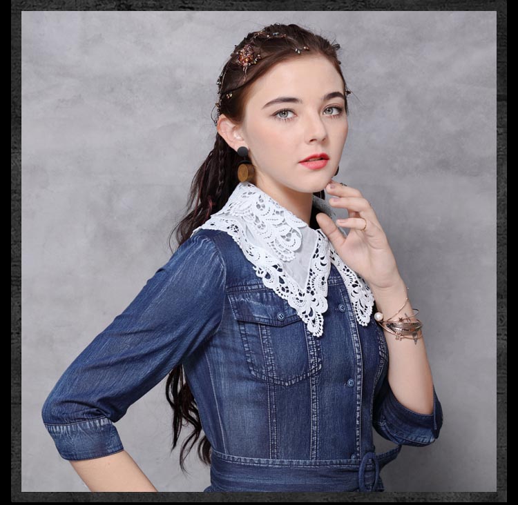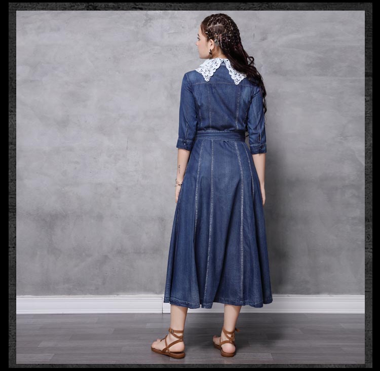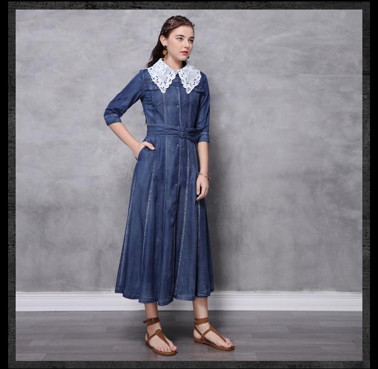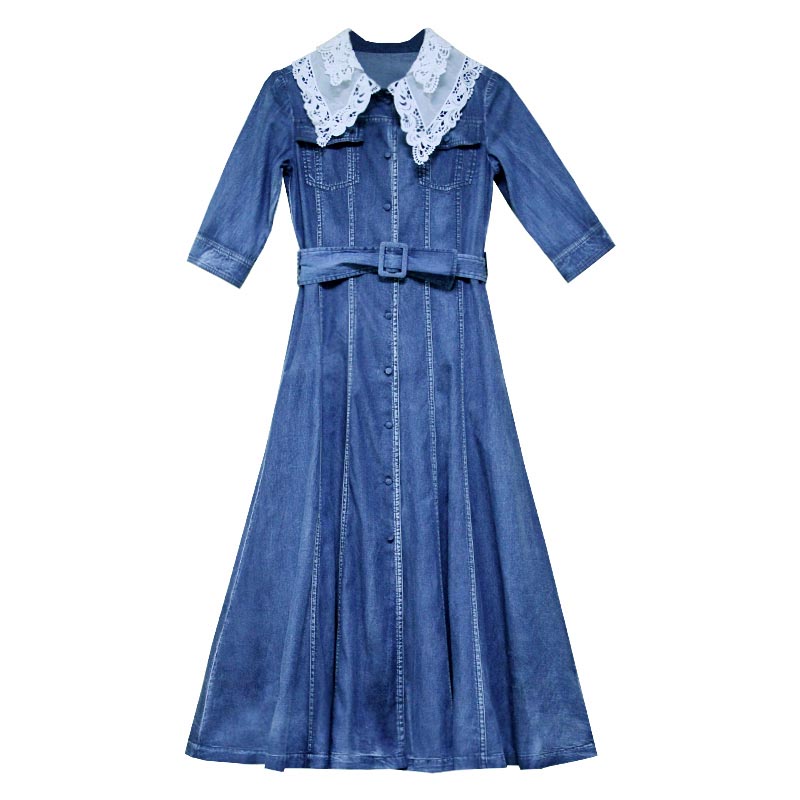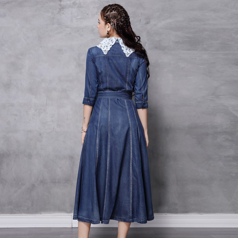 ARTKA PEREIRA KEER FRENCH STYLE LACE DOLL COLLAR MID LENGTH DENIM JEAN DRESS