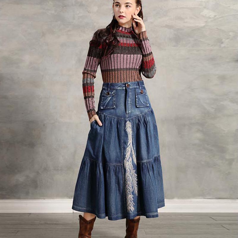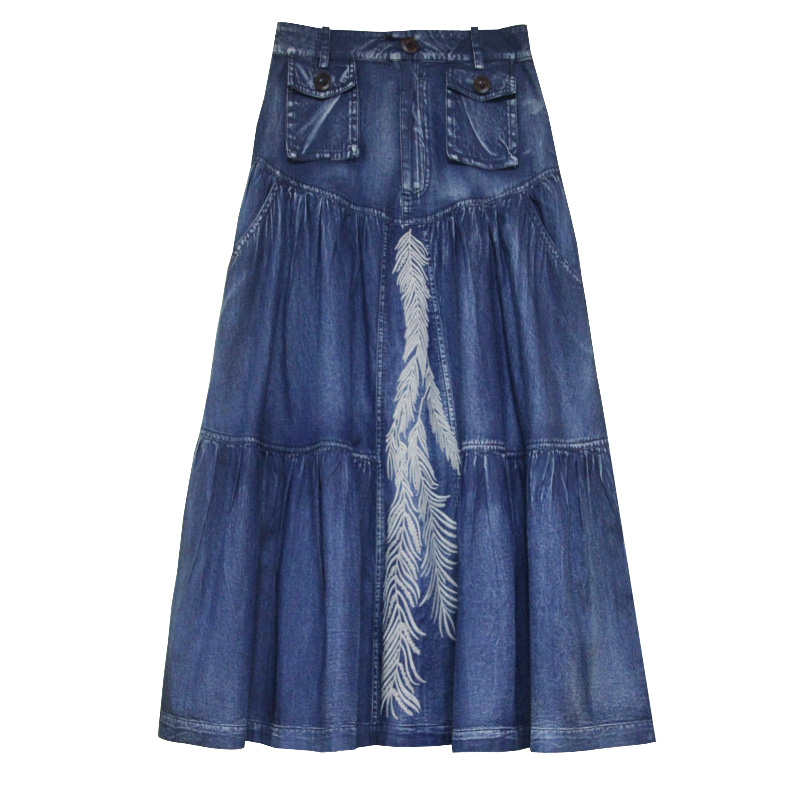 ARTKA PEREIRA KEER FRENCH STYLE MID LENGTH DENIM JEAN RUFFLED SKIRT