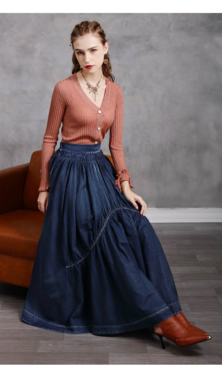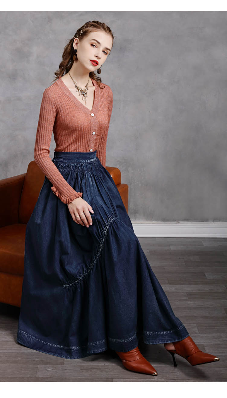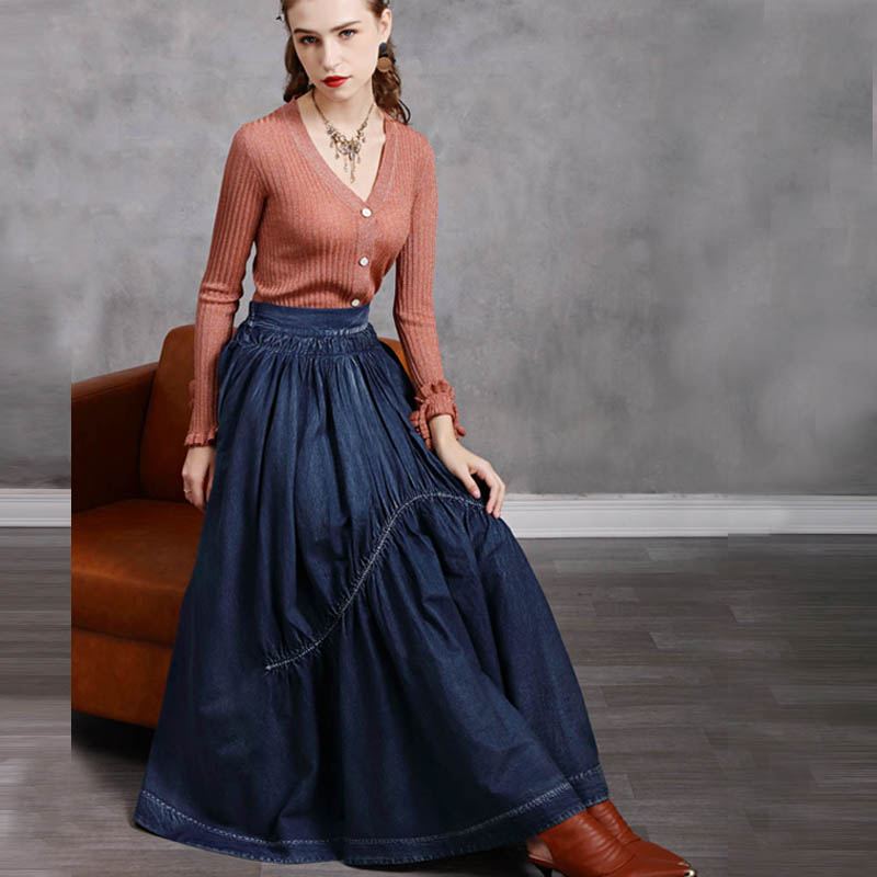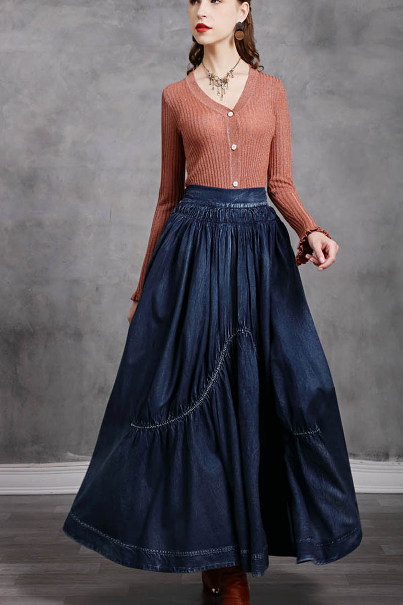 ARTKA GONCALVES KEER DENIM JEAN LONG SKIRT IN NAVY