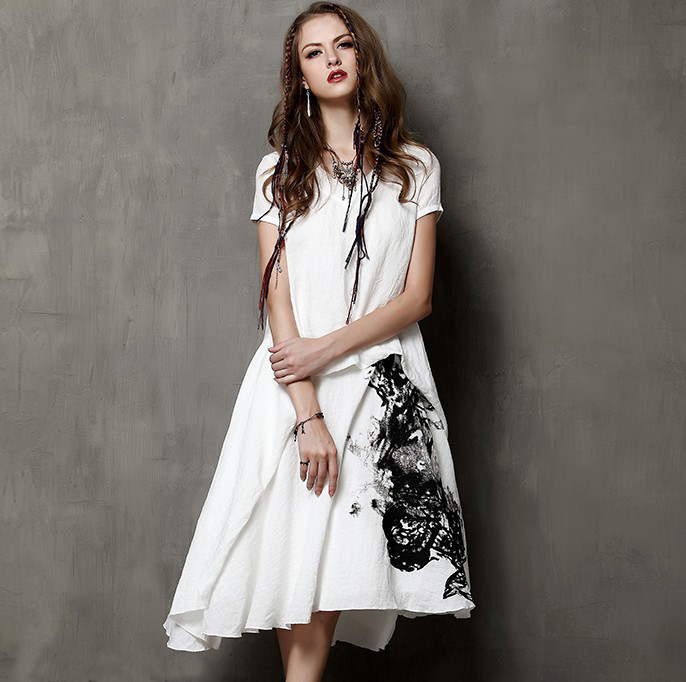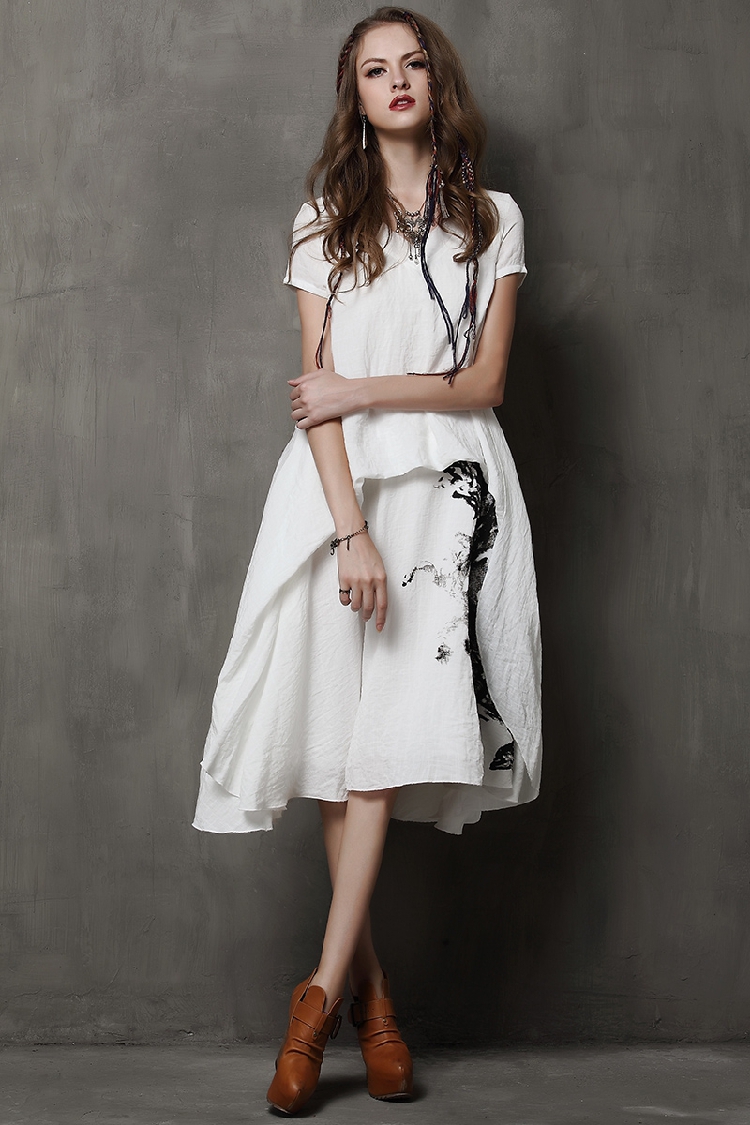 ARTKA LIZZIE KEER V NECK TWO PIECE DRESS IN WHITE