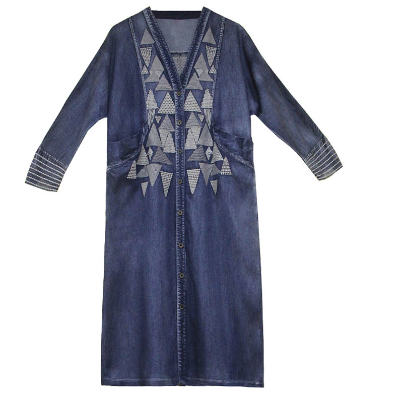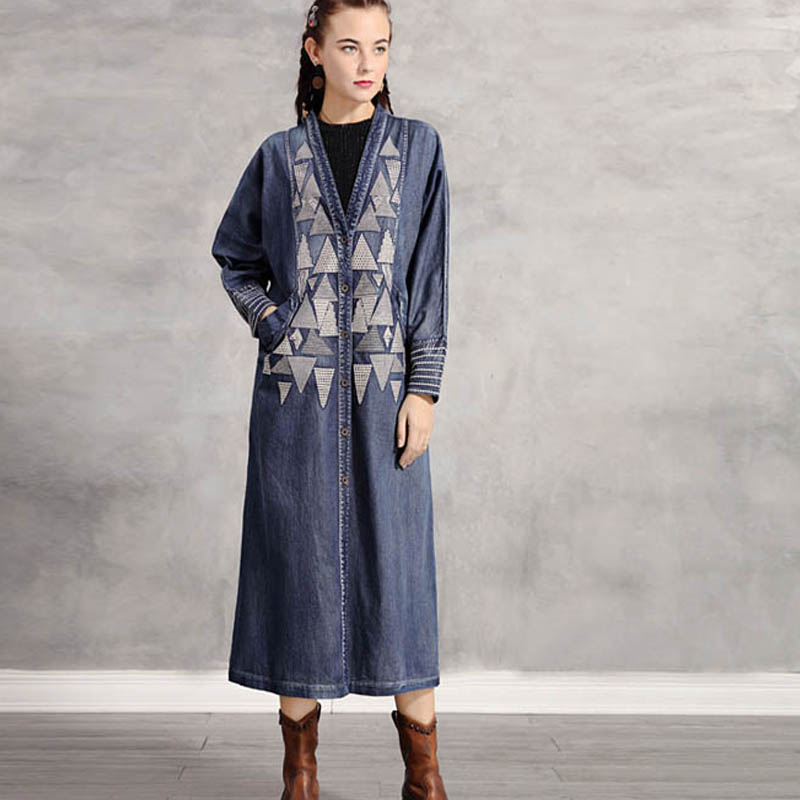 ARTKA LIZZIE KEER ETHNIC EMBROIDERED MID LENGTH DENIM JEAN WINDBREAKER JACKET