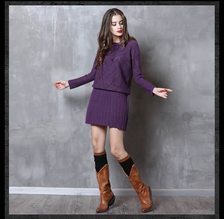 STREET FASHION ETHNIC PATTERN FRINGED SWEATER DRESS