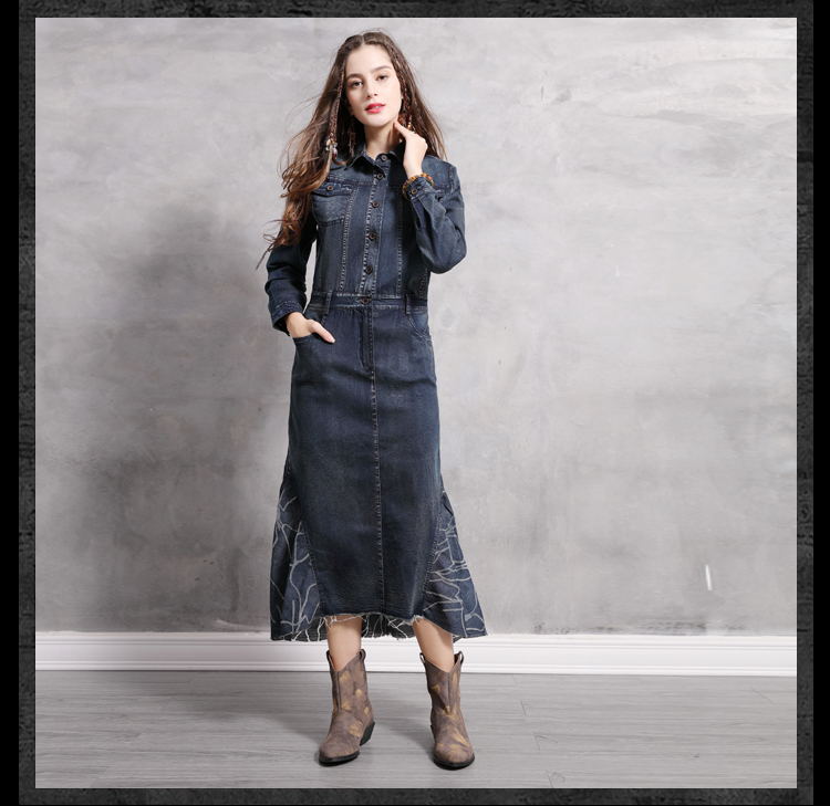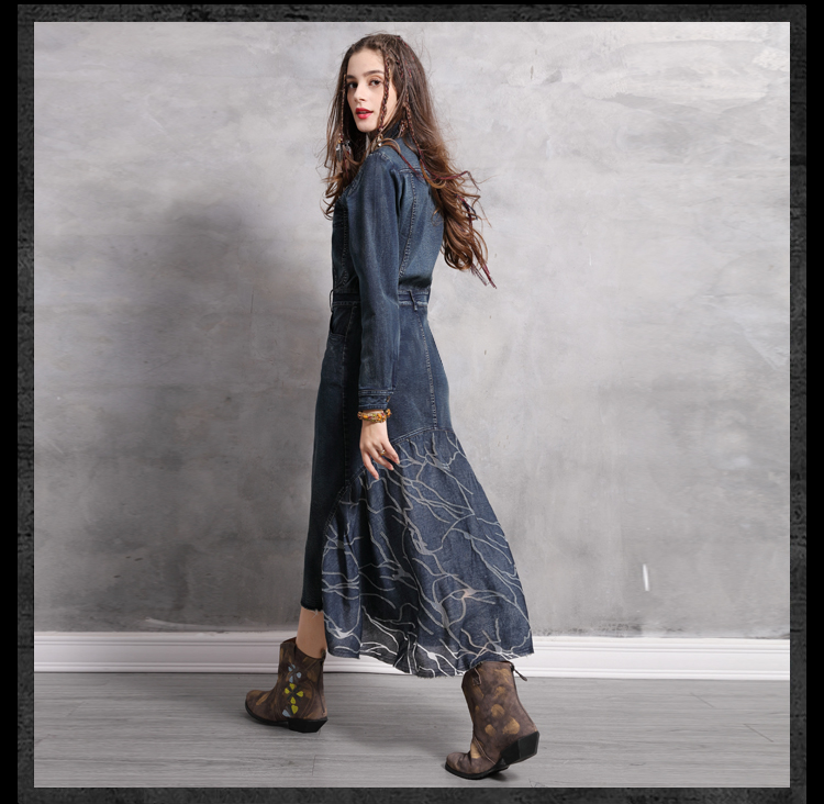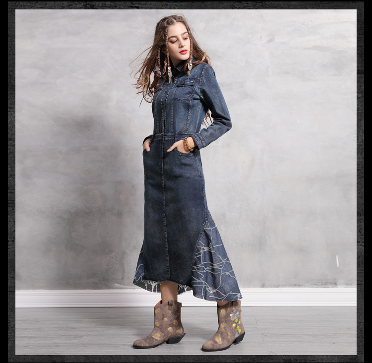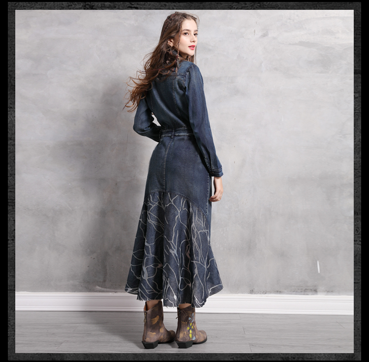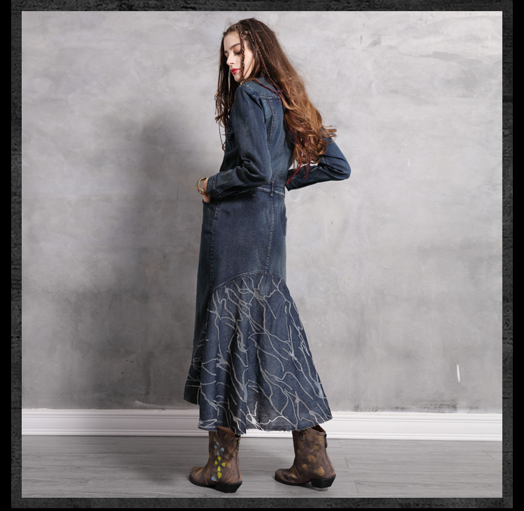 ARTKA KYRA FRIO KEER DENIM JEAN FISHTAIL MAXI DRESS