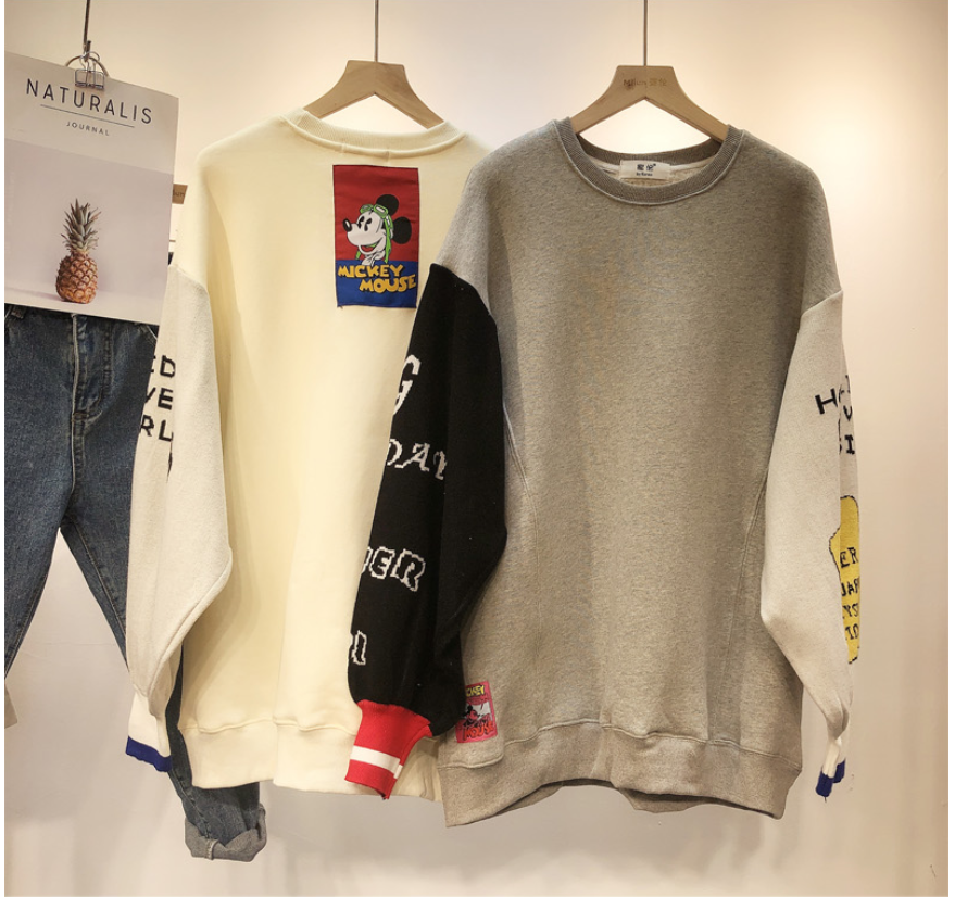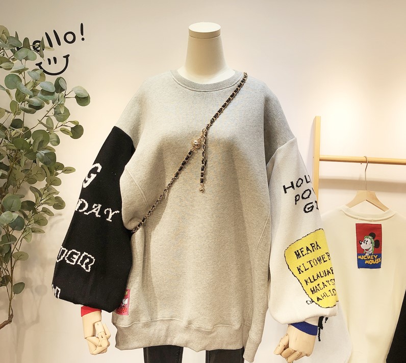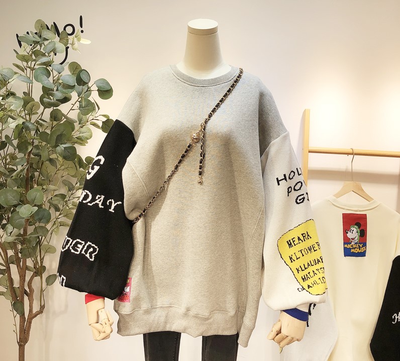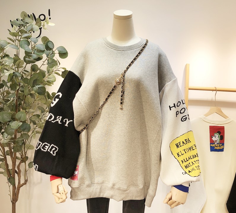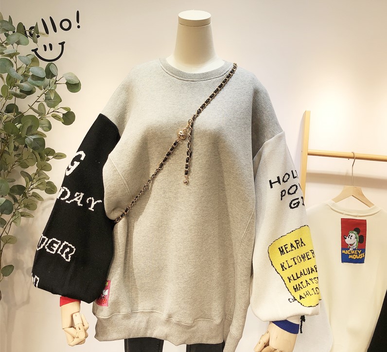 BOOPDO CONTRAST PRINT SLEEVE SWEATSHIRT