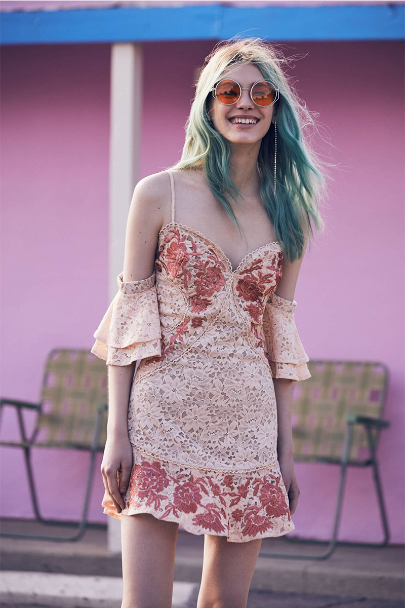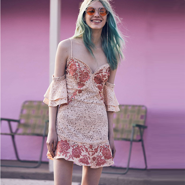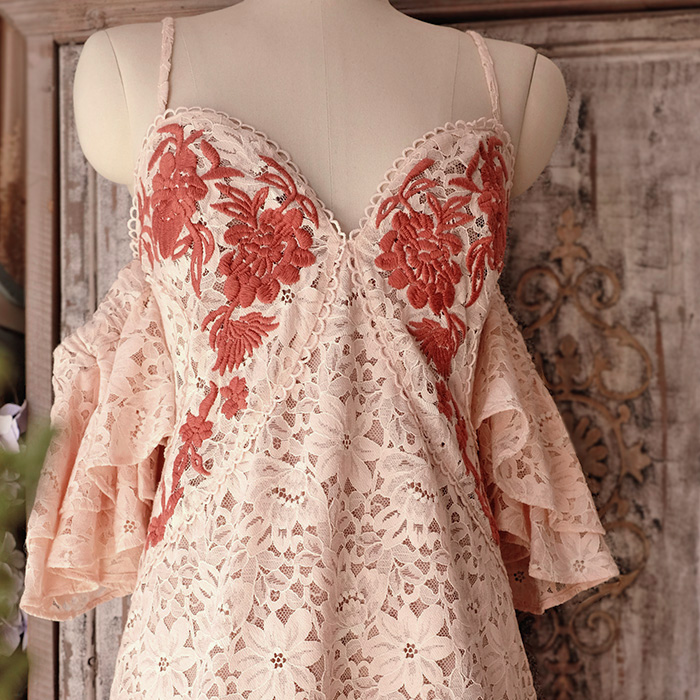 ALICE OFF SHOULDER FLORAL LACE AND EMBROIDERY DRESS