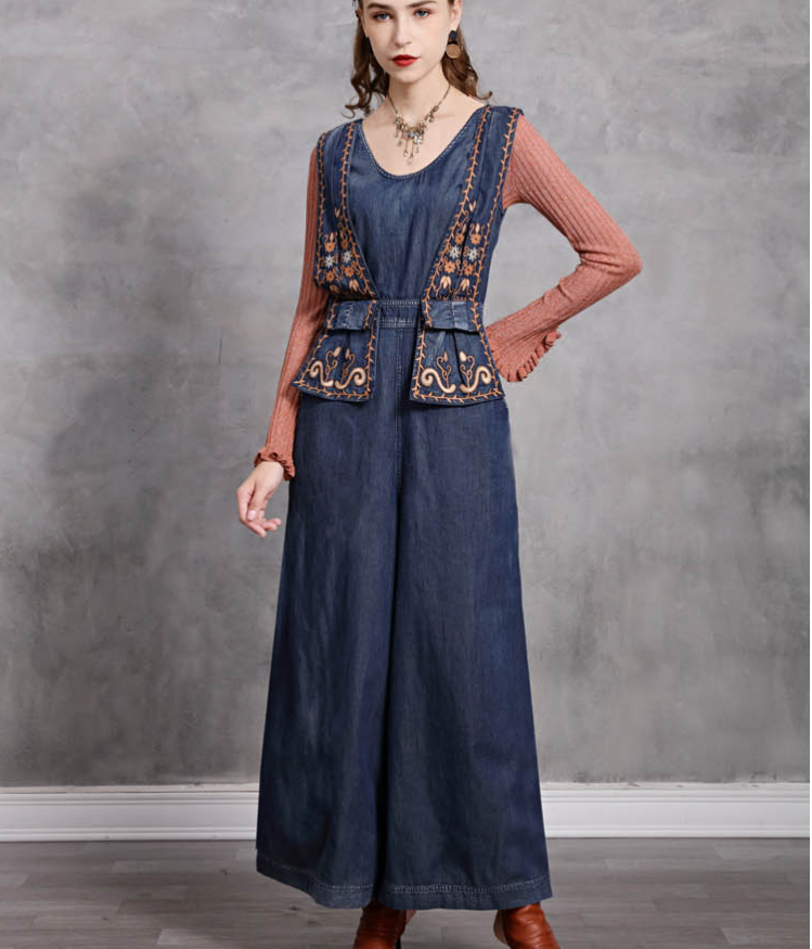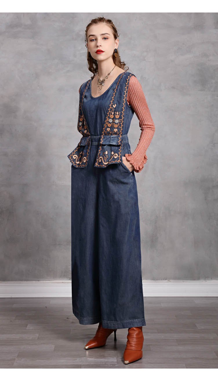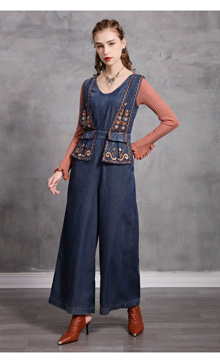 ARTKA MCKINNON KEER WESTERN STYLE WIDE LEG DENIM JEAN JUMPSUIT