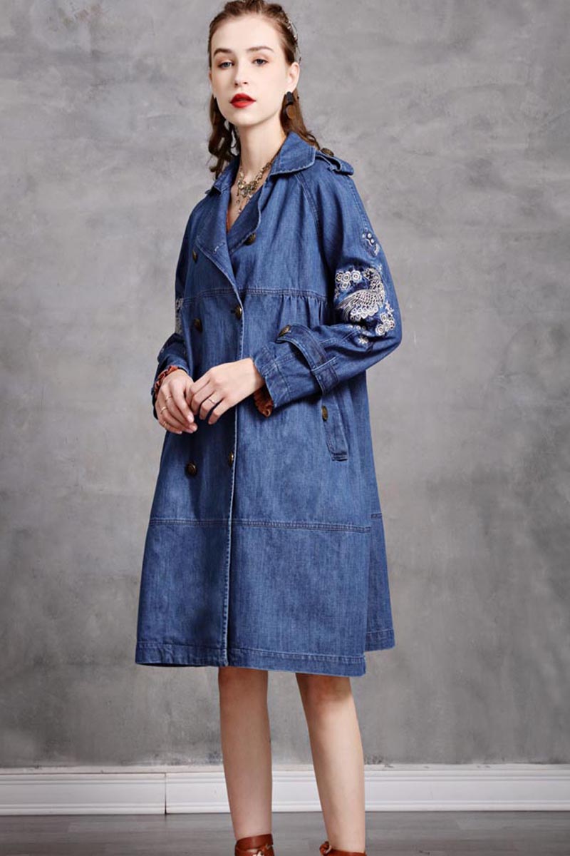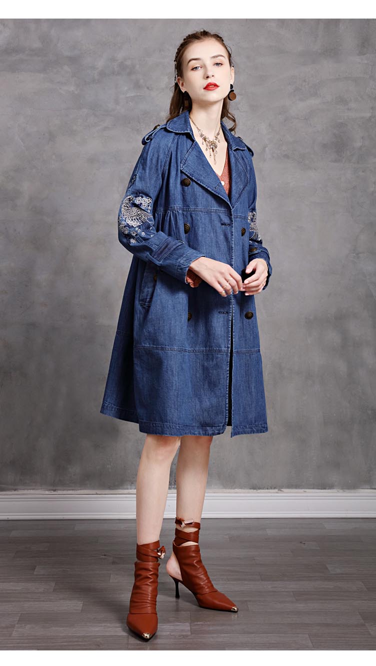 ARTKA MCKINNON KEER BRITISH STYLE MID LENGTH DENIM JEAN WINDBREAKER COAT